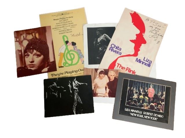 A collection of photos and signatures from Liza Minnelli and one from Neal Simon. A 22“ x 14“ playhouse poster for the musical The Rink starring Liza Minnelli and Chita Rivera. This is autographed by Liza Minnelli. A second playhouse poster featuring They’re Playing Our Song from 1979. Signed by Neal Simon. Also included is a Liza Minnelli "New York, New York" matted photo of Liza Minnelli and three 14" x 11“ pictures of Liza Minnelli and one 8“ x 12“ photo of Liza Minnelli on set of one of her films.