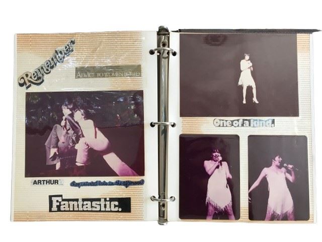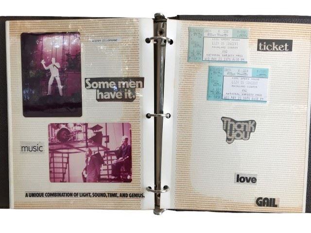 The first scrapbook is collected in a simulated marbled wood 11x10 photo album, and features highlights from her 1979 St. Louis Performance of "The Talk of the Town" at the Kiel Opera House(currently the Stifel Theatre) along with newspaper article clippings and two ticket stubs for Liza in Concert at the Kiel Opera House for Wednesday, May 23 1979.