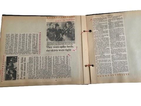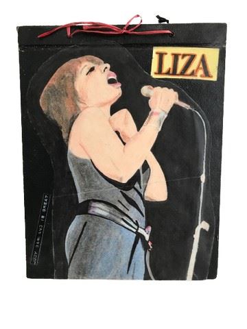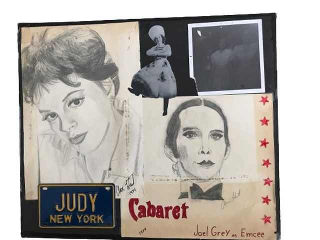 The second scrapbook contains fan art of Judy Garland, Bert Lahr, Joel Grey and Liza Minelli. The Newspaper clippings cover topics such as Liza's childhood, personality and tabloid runs, including one discussing "Liza Minelli's Problem Hair".