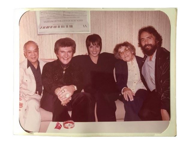 8”x10” Backstage color photo of Liza Minnelli and Liberace with three other people sitting on the couch.