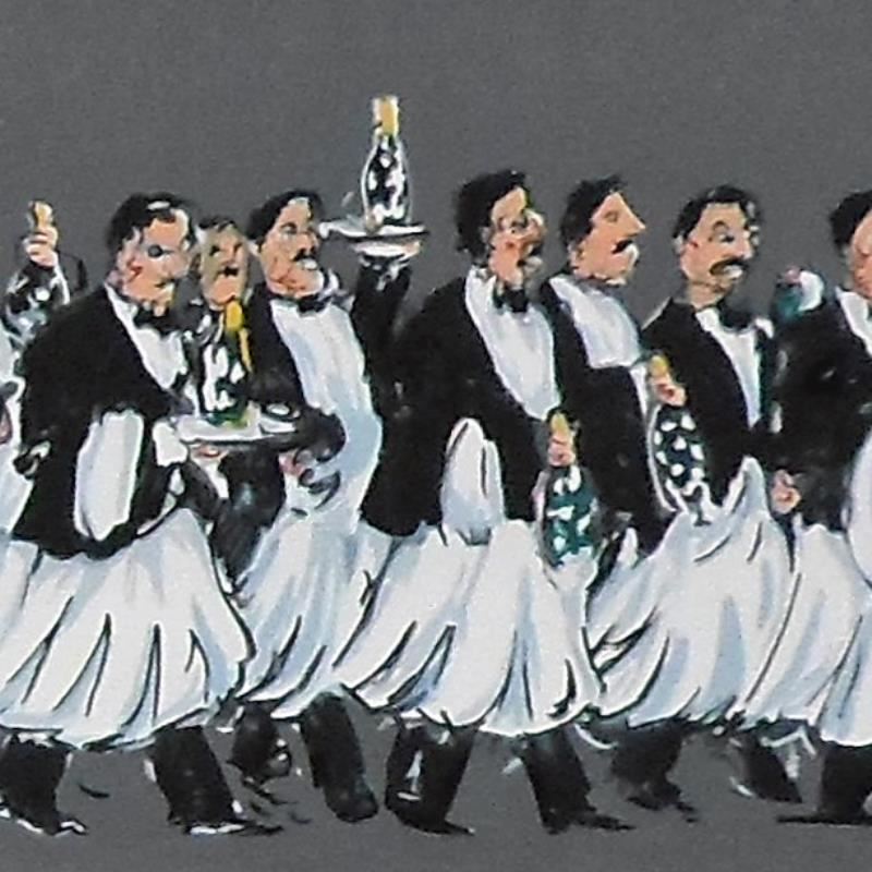 "Liza's Wedding" is a limited edition serigraph on paper by Guy Buffet. It is numbered, hand-signed by the artist, and comes with a Certificate of Authenticity. Measures approx. 44.125" x 8.5" (image).