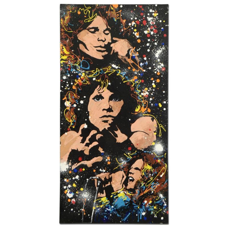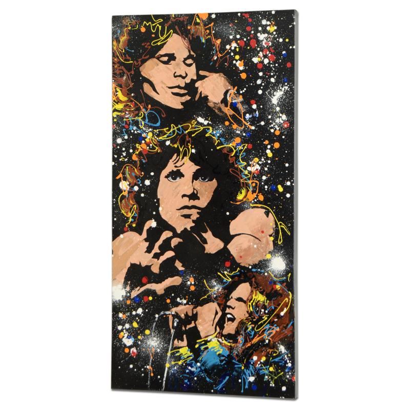 "Lizard King" is an original acrylic painting on canvas by KAT. This piece is hand signed by the artist and comes gallery wrapped and ready to hang. Includes Certificate of Authenticity. Measures approx. 24" x 48" (image).