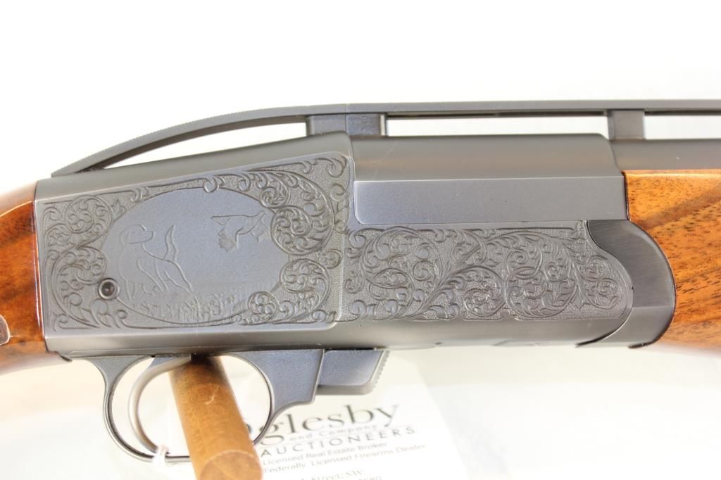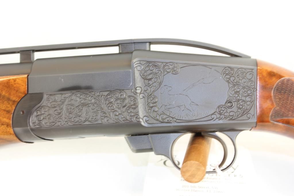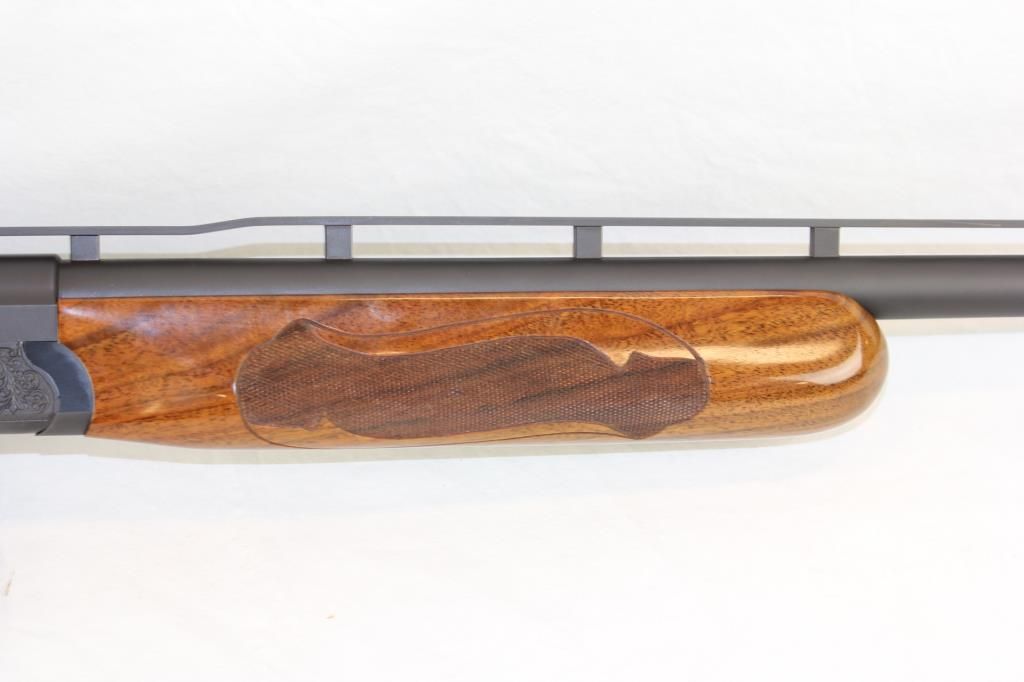 34" Raised Vent Rib, Full Choke, Release Trigger, Hand Engraved and Hand Checkered. Beautiful Single Barrel Trap Gun in Excellent Condition.