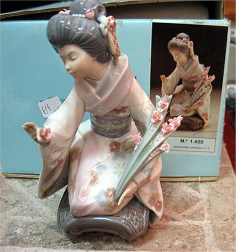 Lladro #1450 "Kiyoko" Open edition, retired. Issued in 1983, Last year of issue 1998. With box. No chips or cracks, flowers are intact