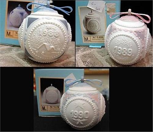 Lladro Christmas Ball #730 #656 and #603 dates: 1988, 1989 and 1990 with original boxes and bows, no chips or cracks