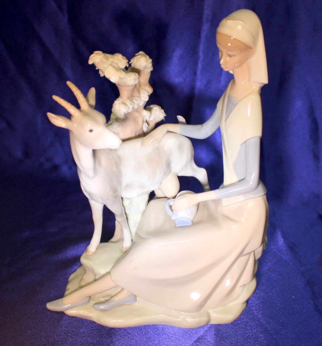 Lladro figurine "Shepherdess with Goat" #4570 girl with goat in mint condition. Issued 1970 Retired 1981. No box.