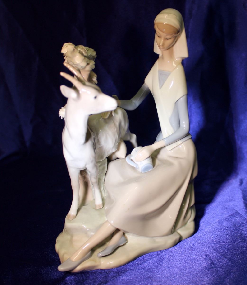 Lladro figurine "Shepherdess with Goat" #4570 girl with goat in mint condition. Issued 1970 Retired 1981. No box.