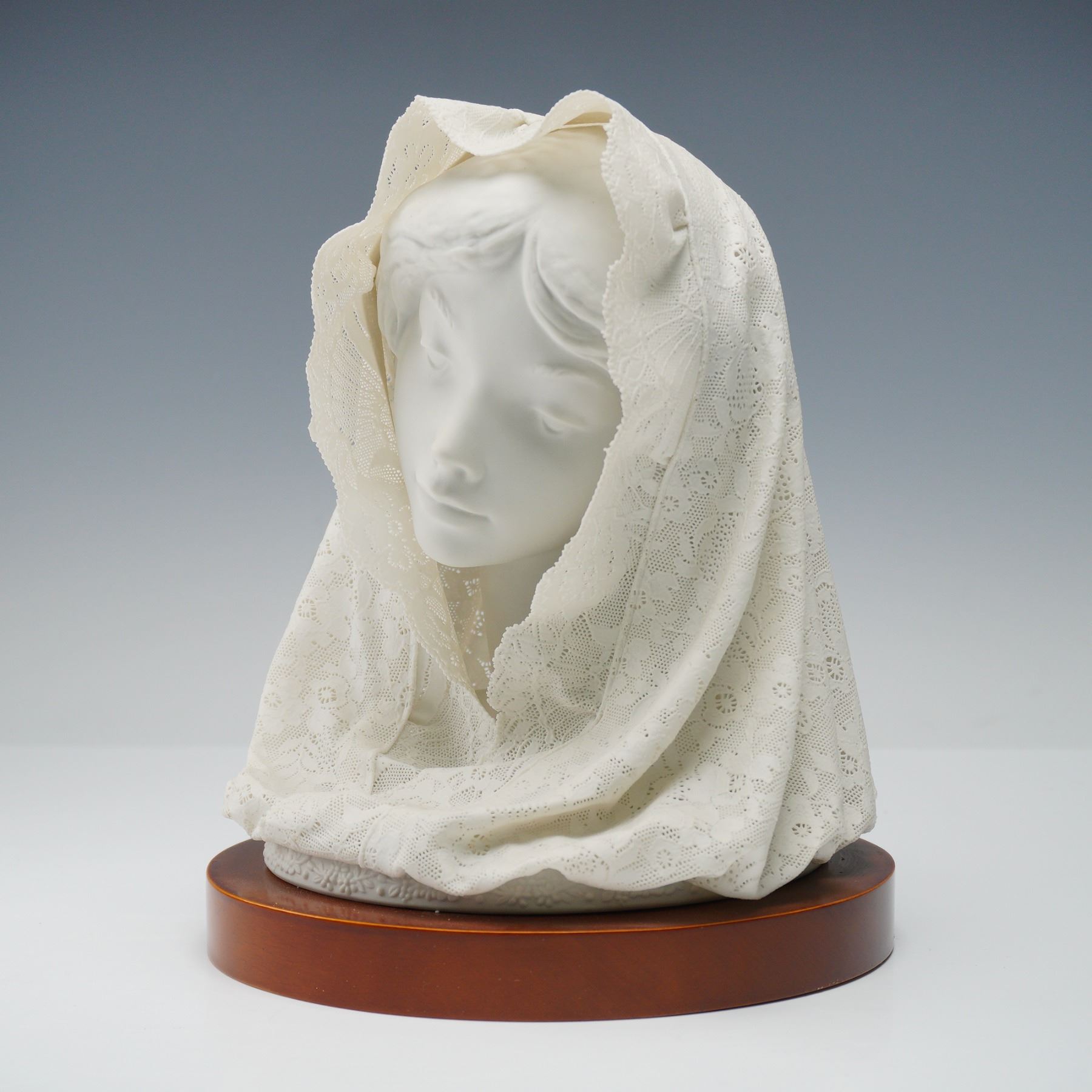 Lladro Porcelain Bust with Base, Small Bust with Veil 01011539