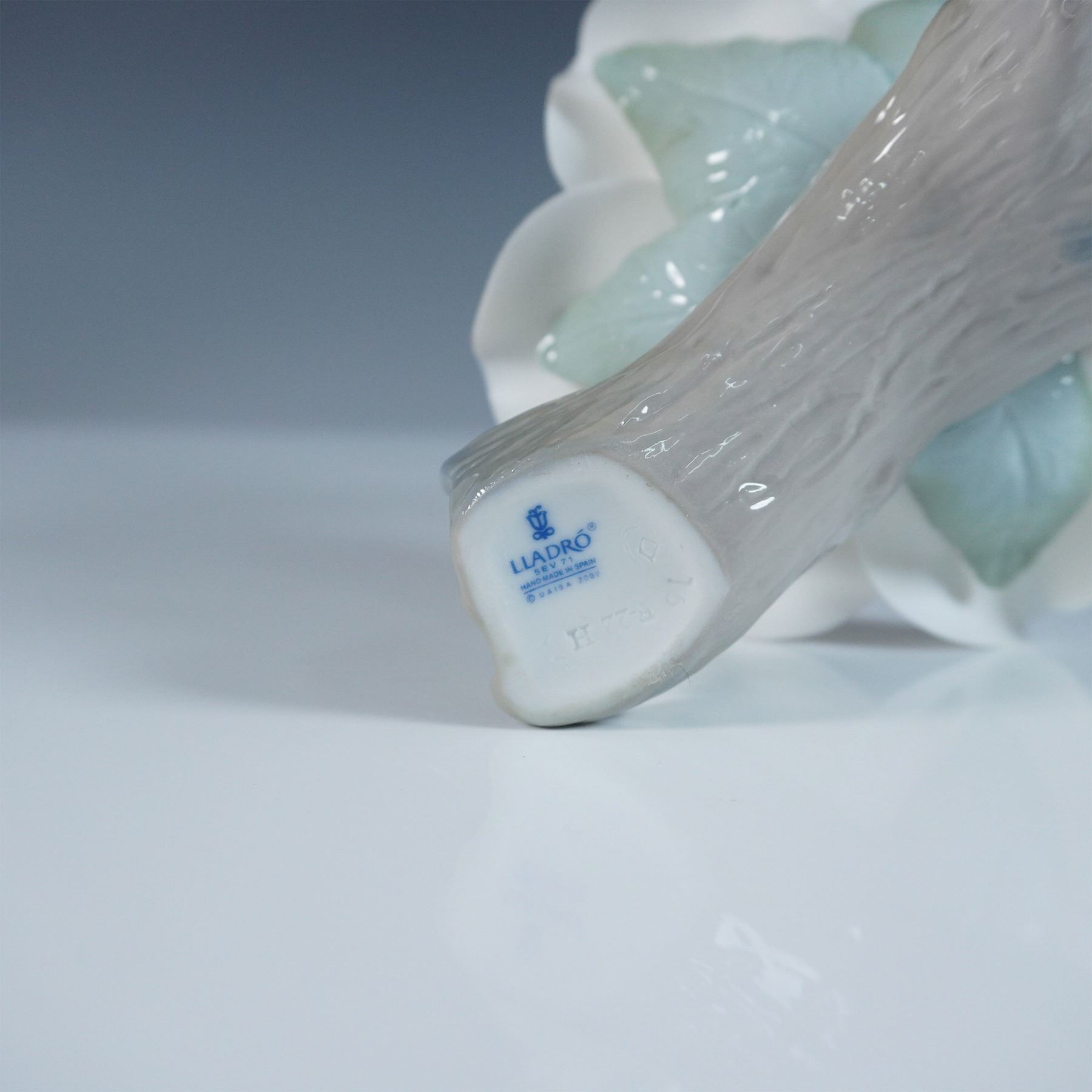 A celebration of renewal and innocence, this Lladro porcelain figurine Born in Springtime beautifully captures the delicate charm of a cherubic child nestled within a blooming flower. Designed by sculptor Juan Carlos Ferri Herrero, this enchanting piece features a serene infant stretching and awakening as gentle birds flutter nearby. The pastel hues, intricate floral accents, and textured tree branch add depth and elegance to this composition. Finished in Lladro’s signature glossy glaze and marked with the Lladro blue backstamp on the underside.
