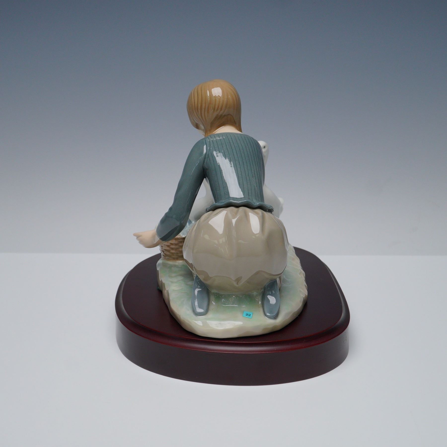 Lladro Porcelain Figurine, Feeding the Ducks 1004849 with Base