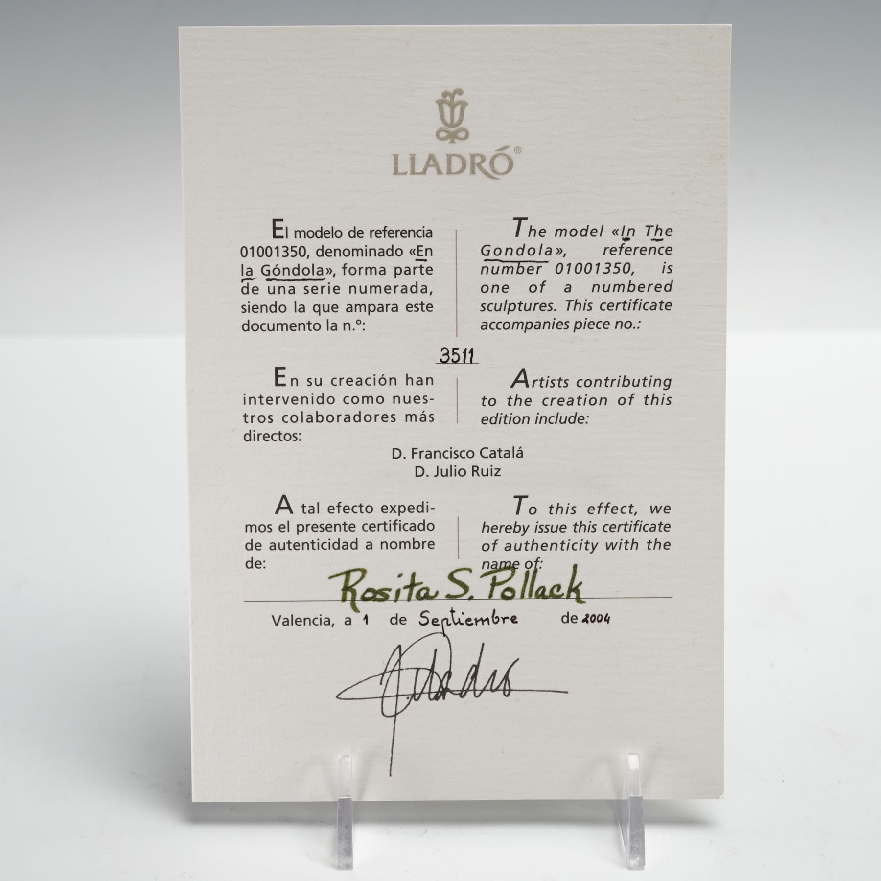Lladro Porcelain Figurine with Base, In The Gondola with Base 1001350