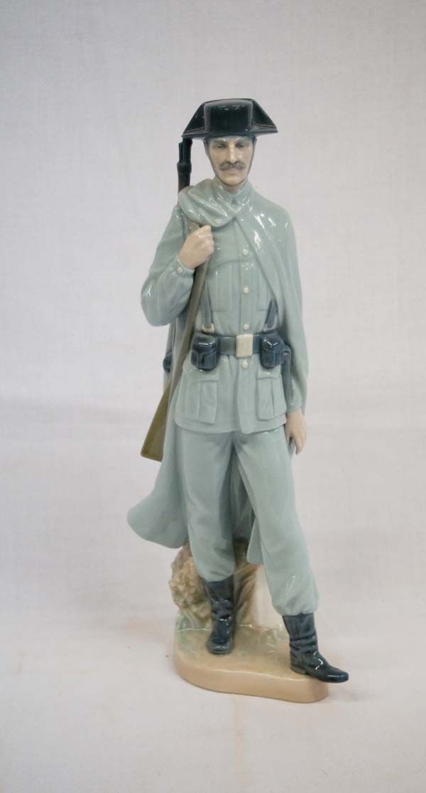 Retired Lladro Spanish Policeman Guardia de Civil Figure #4889, sculptor was Salvador Furio, issued in 1974 and retired in 2002, glazed and stands 11.75''T