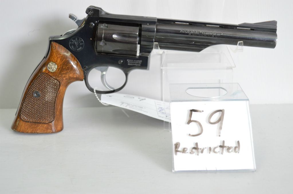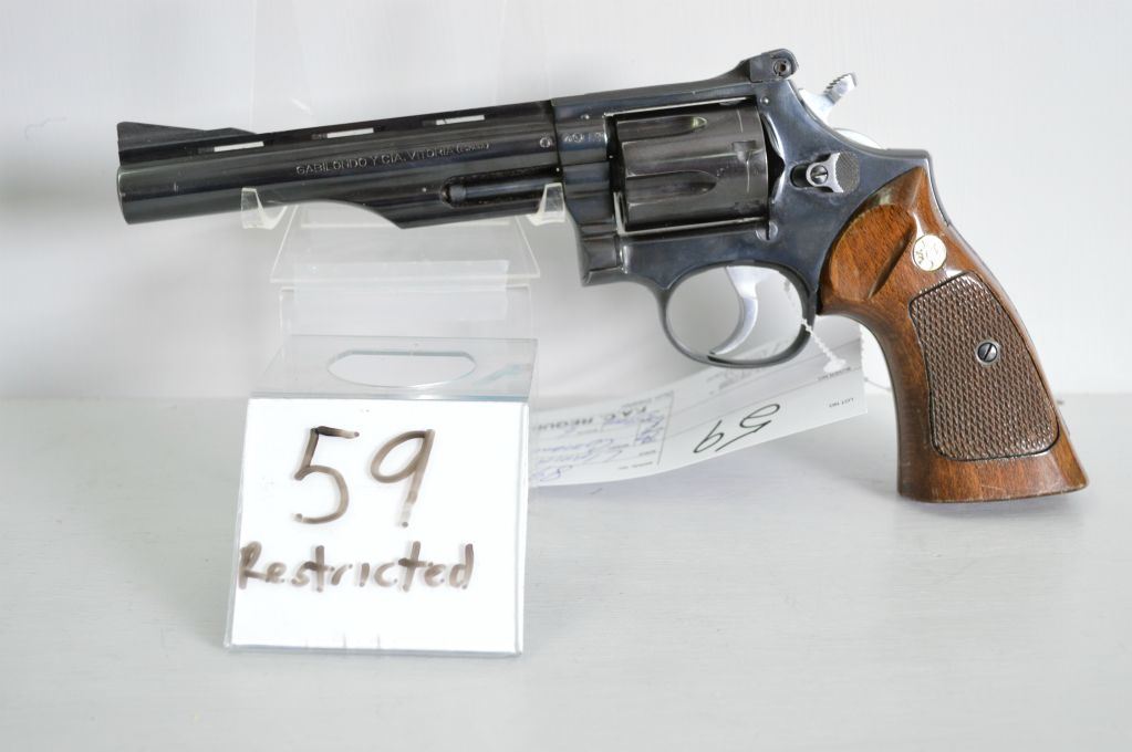 Llama Mod Comanche III .357 mag cal 6 shot Revolver w/ 152 mm bbl [ blued finish, adjustable rear sight, slight cylinder ring, vented bbl , walnut checkered Llama insignia grips, few slight marks ] Ser # 893581 Restricted Cert # TCI