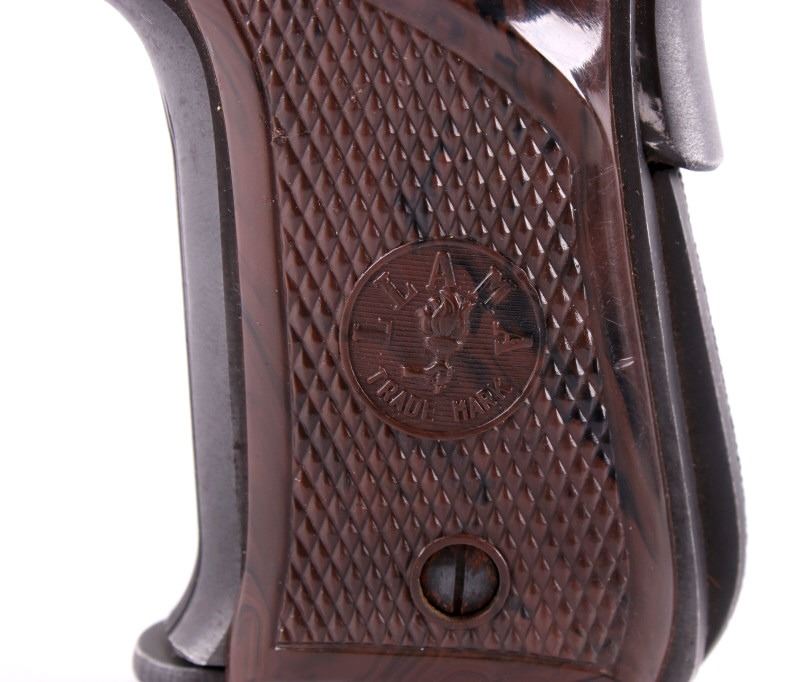 For your consideration is a Llama Model III .380 ACP semi-automatic pistol. The Llama Model III was introduced with a grip safety, locked breech and chambered in .380 ACP. Llama Firearms, officially known as Llama-Gabilondo y Cia SA, was a Spanish arms company founded in 1904 under the name Gabilondo and Urresti. Its headquarters were in Eibar in the Basque Country, Spain, but they also had workshops during different times in Elgoibar and Vitoria. Llama manufactured moderate-priced revolvers and self-chambering pistols. This pistol is modeled after the popular Model 1911. It utilizes a 9 round magazine and 3 7/8" barrel. The slide is marked "Llama Gabilondo Y Ciavitoria (Espana) Cal. 380." The pistol comes with the original brown plastic factory grips. Serial Number: 592769. This firearm qualifies as a Curio & Relic Long Gun, and requires FFL Transfer or NICS Background Check.