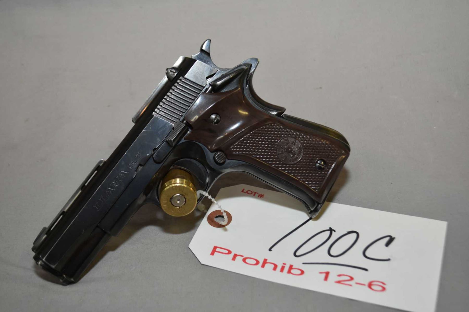 Llama Model XV .22 LR Cal 8 Shot Semi Auto Pistol w/ 95 mm bbl [ blued finish, starting to fade front & back straps, few slight marks, vented slide, brown checkered Llama grips, adjustable rear sight ] Ser # 658552 Prohib 12 - 6 Cert # 8444786 FRT # 20558 - 1 EXPECT DELAYS IN TRANSFER