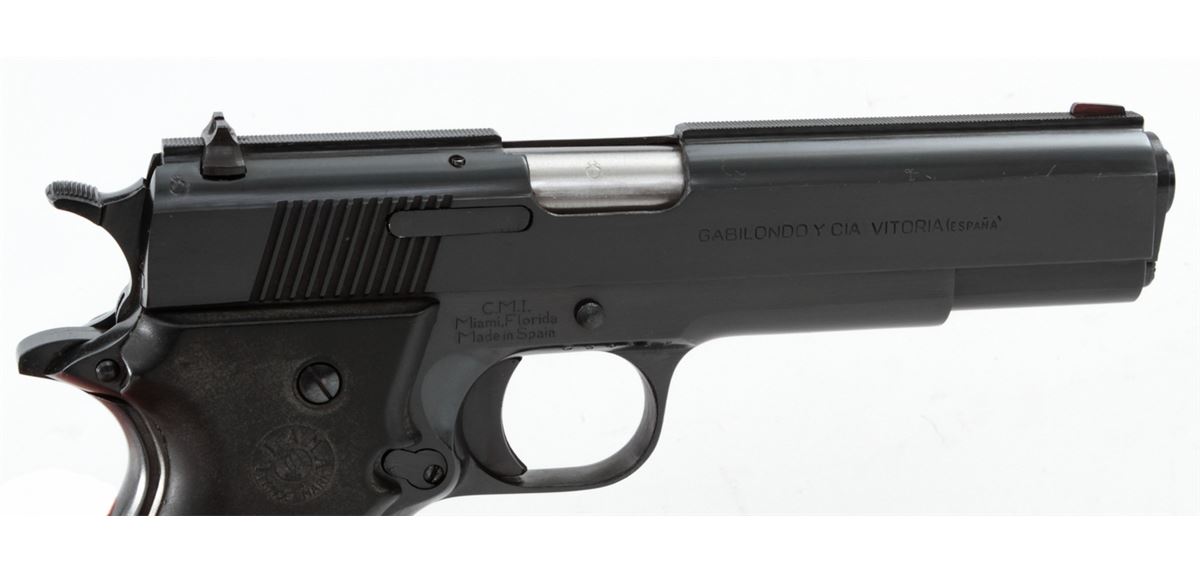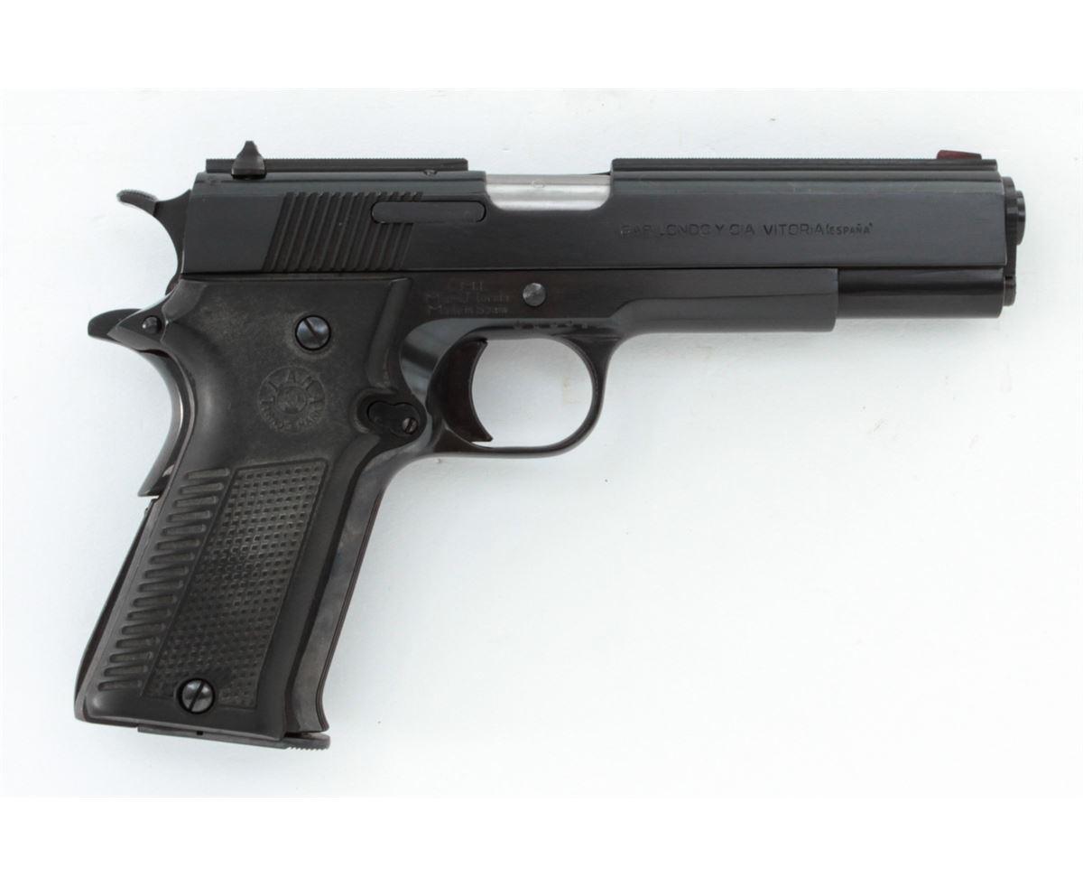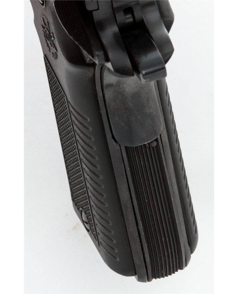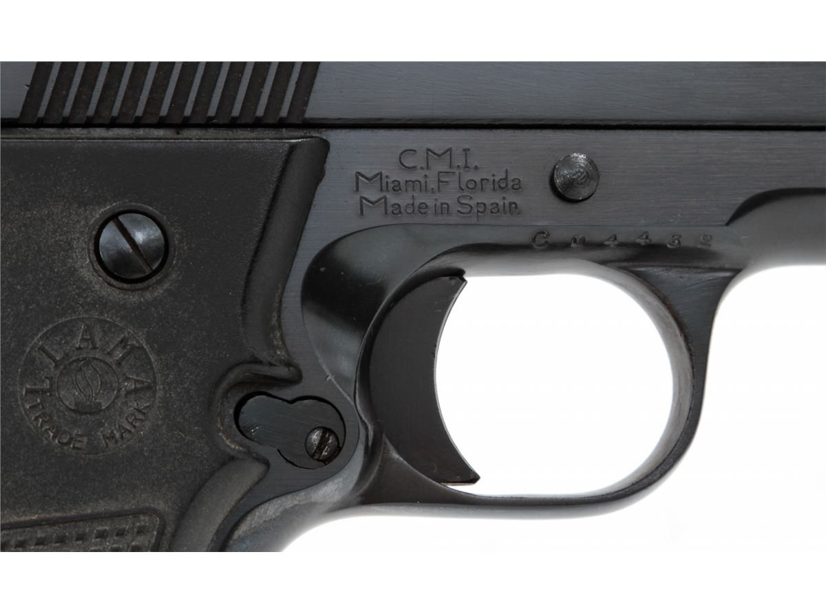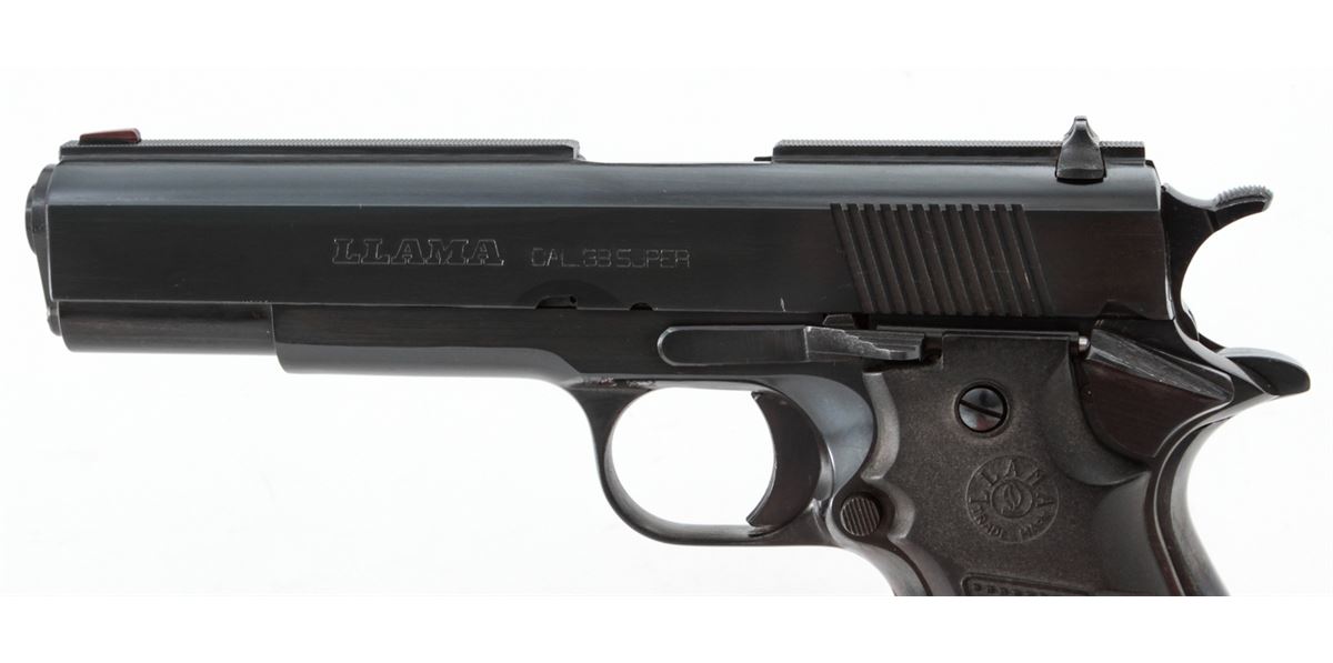 Llama Semi-Automatic Pistol, #CO4432, .38 Super cal., 5'' barrel, blue finish, factory checkered black plastic grips. Condition is excellent with light marks from handling. Grips show mild discoloration. In original box. Est.: $250-$450. (Modern/PPT)