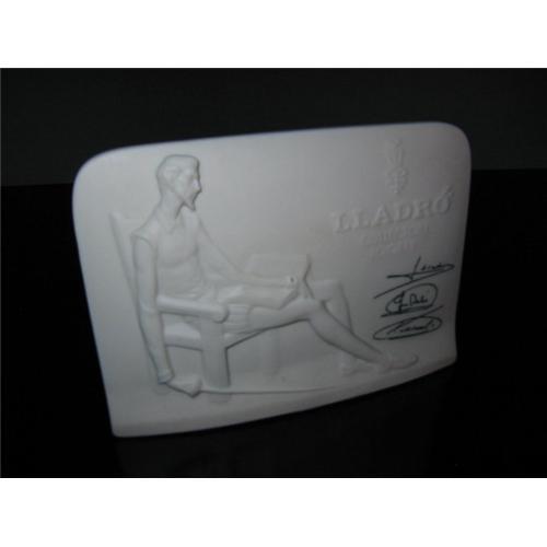 This exquisite plaque in majolica style, has multiple signs, signatures and stamp of Llardo. Indicates Llardo Collector's Society with Three signatures, and stamp on the base, symbol of Llardo Hand Made In Spain Odesa 1985. This collecotr's find is in excellent condition with 4.5 by 6 by 2.5 inches and the back has a wave pattern in triangular style and has a pure white color. It would make a lovely decor.