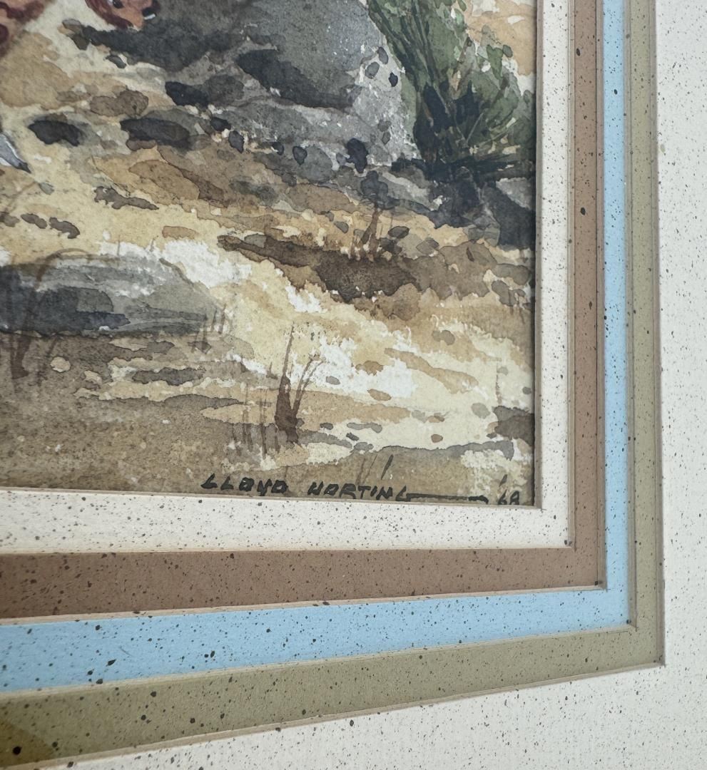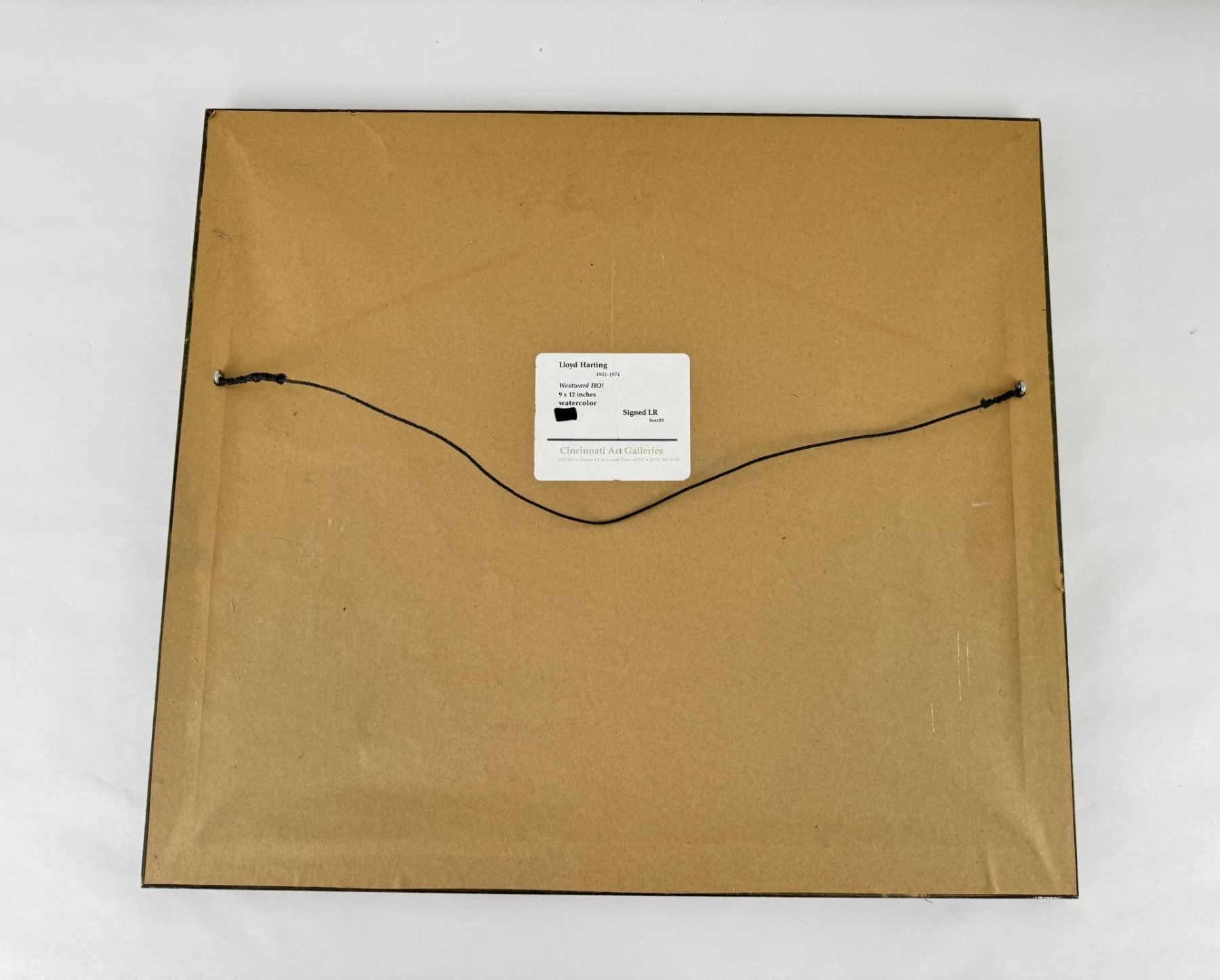 Title is Westward Ho. 9" by 12" unframed. 20" by 22 1/2" framed. Lloyd Harting (1901 - 1974) was active/lived in California, Minnesota. Lloyd Harting is known for Illustration, animation, watercolor western scene painting. loyd Harting was born in Little Falls, Minnesota, on the first of December in 1901. He attended the College of Engineering at the University of Minnesota, and then studied at the Minneapolis School of Fine Arts. He continued his artistic training at the Chicago Art Institute in Illinois, the Grand Central Art School in New York City, and even attended various art schools in Los Angeles, California throughout his artistic career. An illustrator, Harting mostly did calendar and direct mail illustration, as well as the more traditional magazine and motion picture illustration. He worked as an illustrator for Brown and Bigelow in St. Paul, Minnesota for thirty years. However, Harting also illustrated for the motion picture industry in both advertising and production. He worked for both 20th Century Fox and Walt Disney Studios for a little over four years each. He illustrated for Disney during the 1940's, and was one of the Art Directors for Disney's 1942 acclaimed animated film, Bambi.