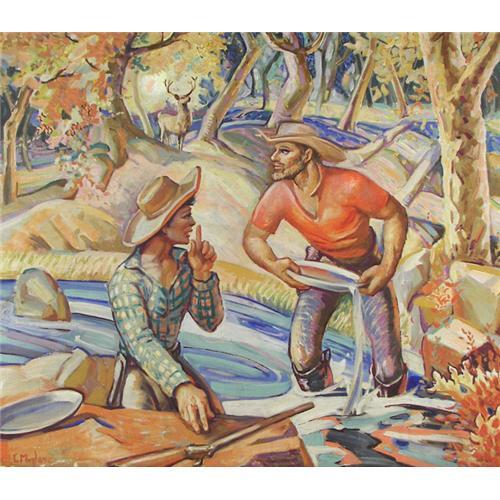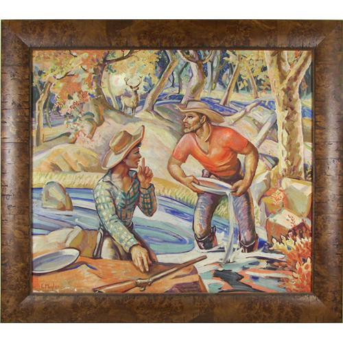 Lloyd Moylan (1893-1963) Broadmoor Art Academy, Oil on Canvas, Gold Panners, 26" x 30", signed lower left