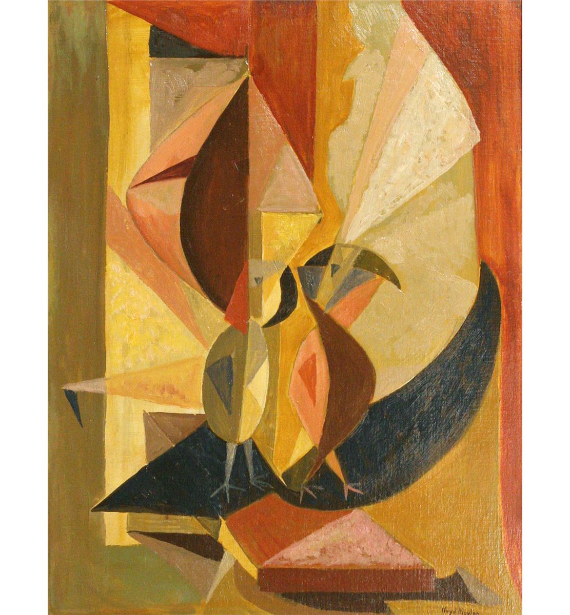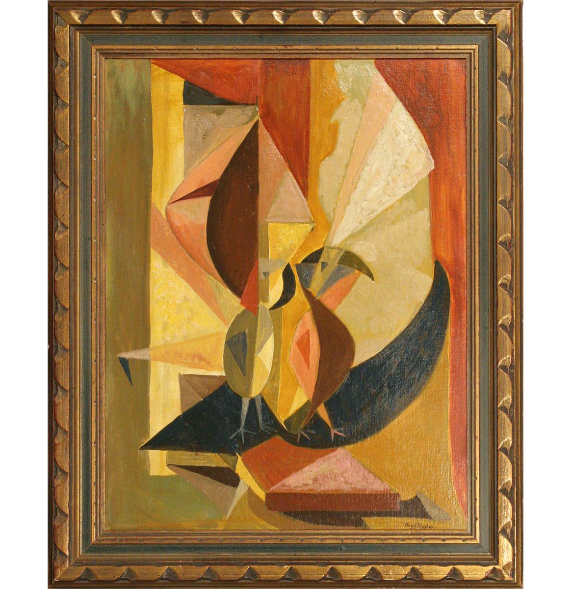 Lloyd Moylan (1893 - 1963). Two Birds. 28" x 22" oil on board. Signed lower right: lloyd moylan. Titled verso: TWO BIRDS #200.