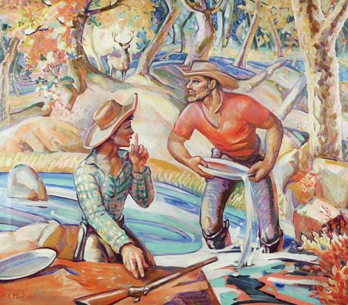 Lloyd Moylan (1893 - 1963) Oil on Canvas Gold panners Signed lower left 26" x 30"