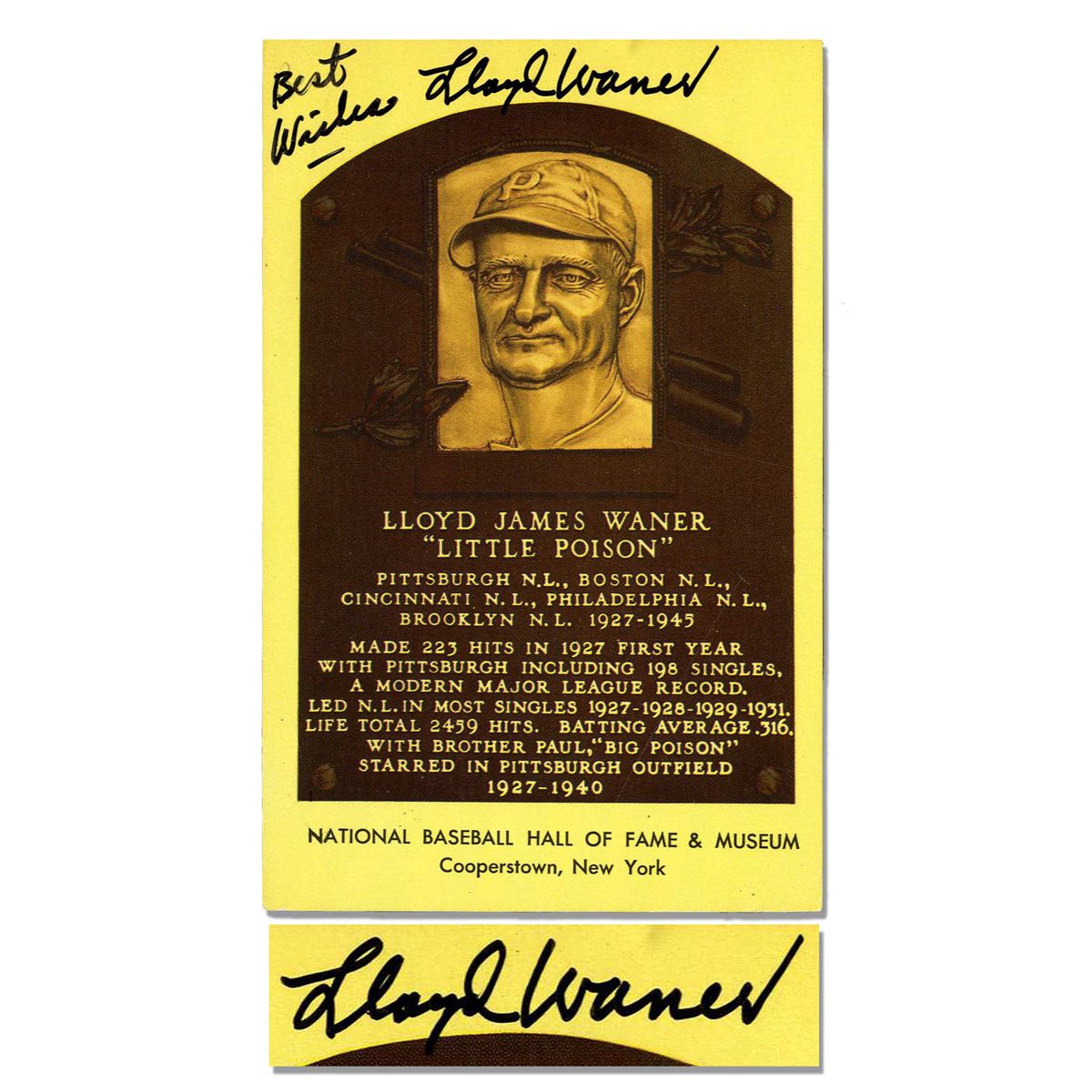 Lloyd Waner Signed Postcard of Hall of Fame Plaque -- ''Best Wishes / Lloyd Waner'' -- 3.5'' x 5.5'' -- Fine, With JSA COA