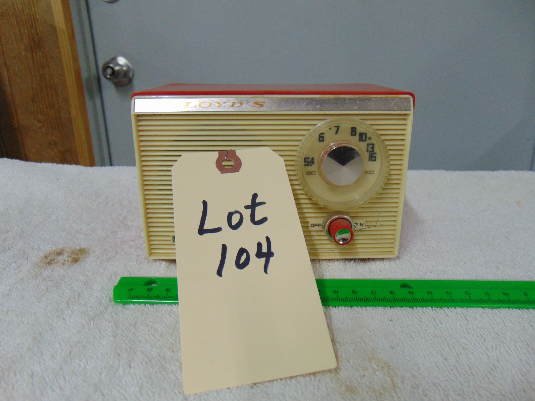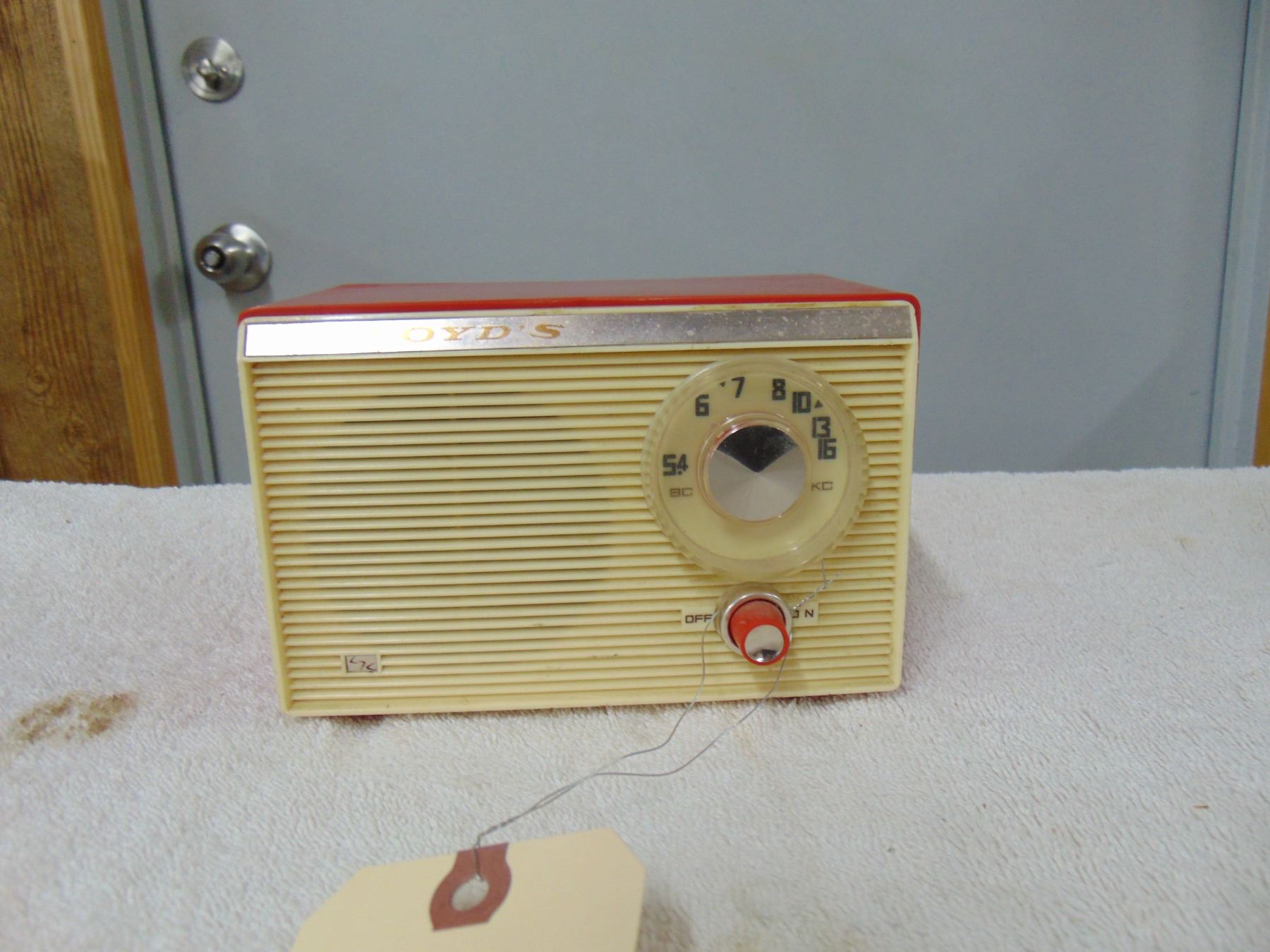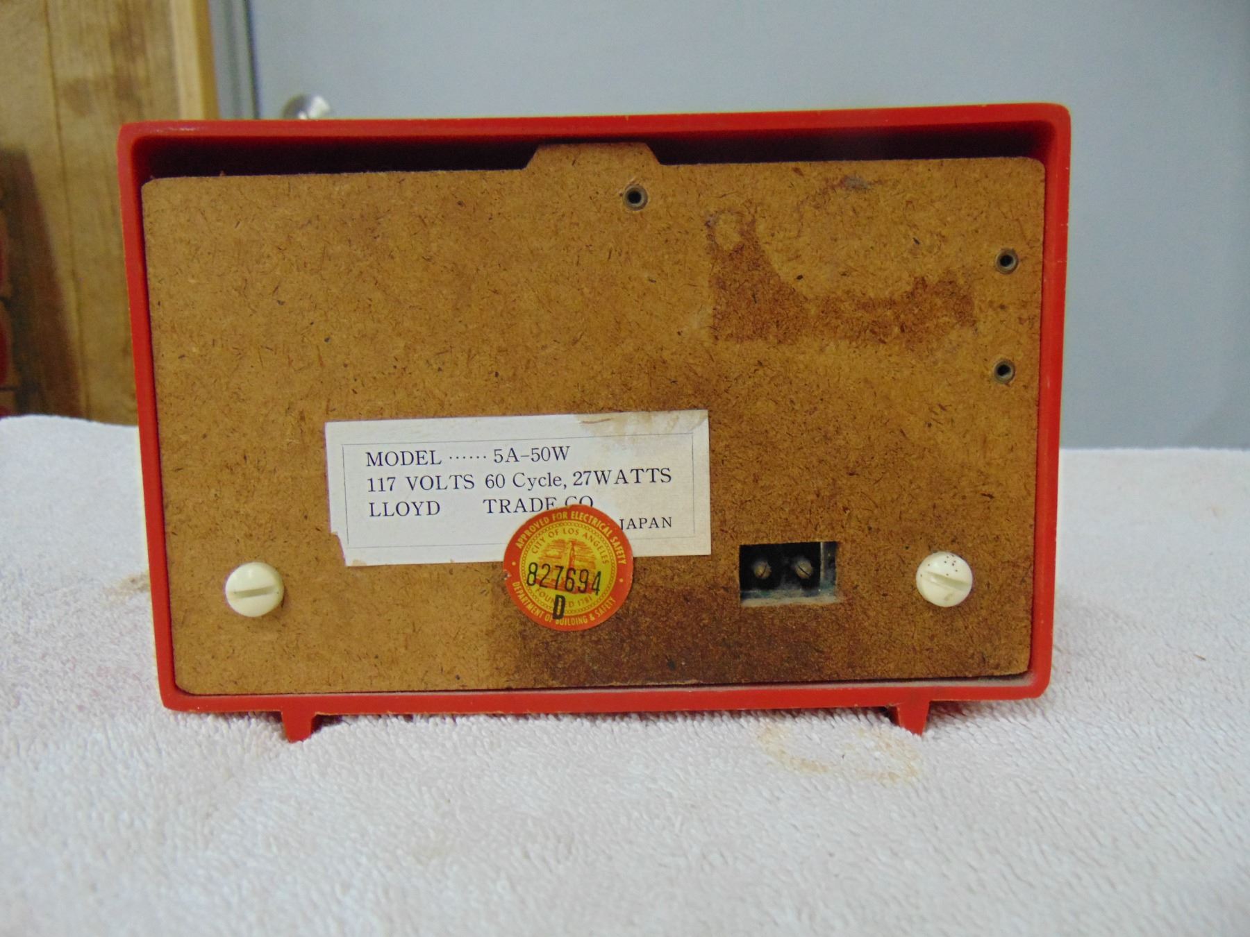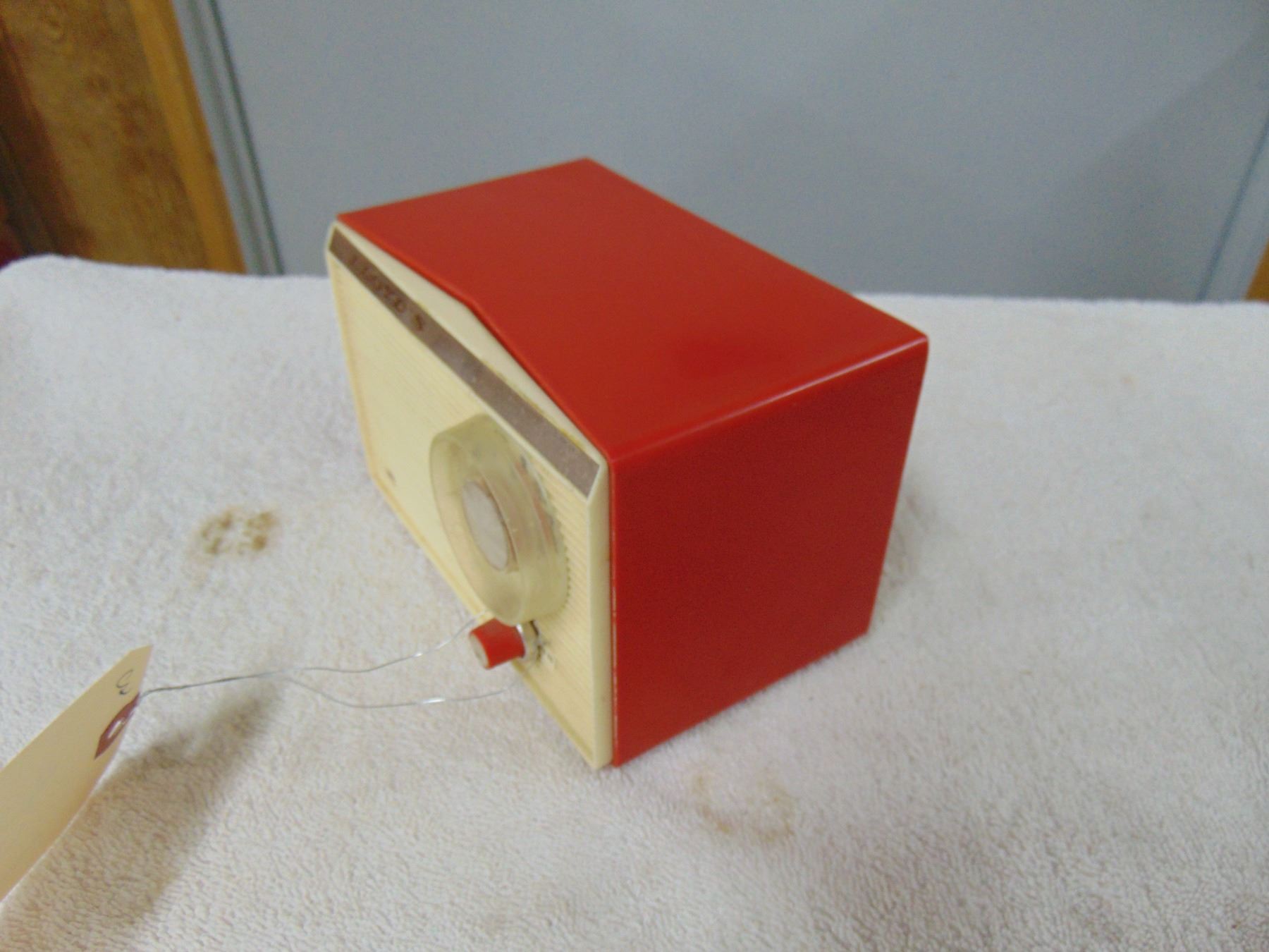 Small 5 tube red and cream bakelite table set; model 5A-50W; cute!!!