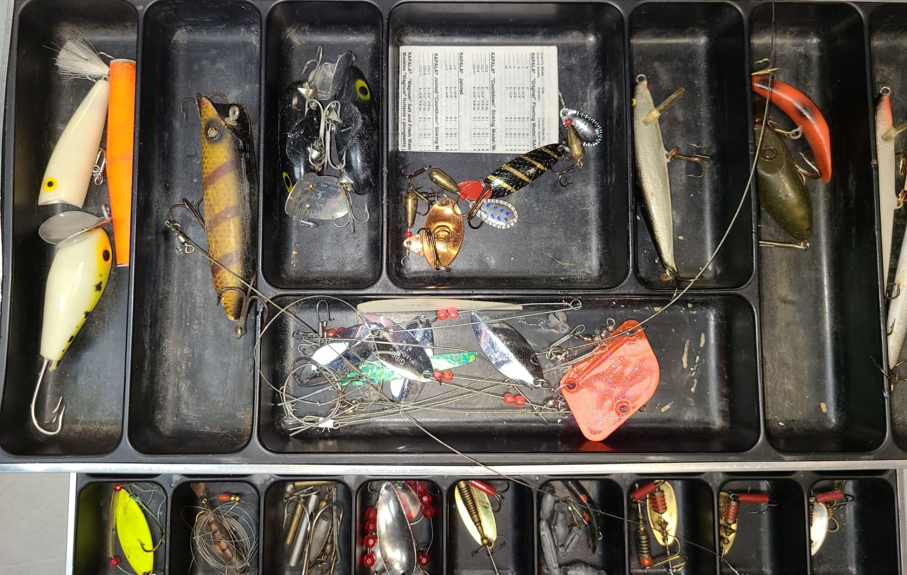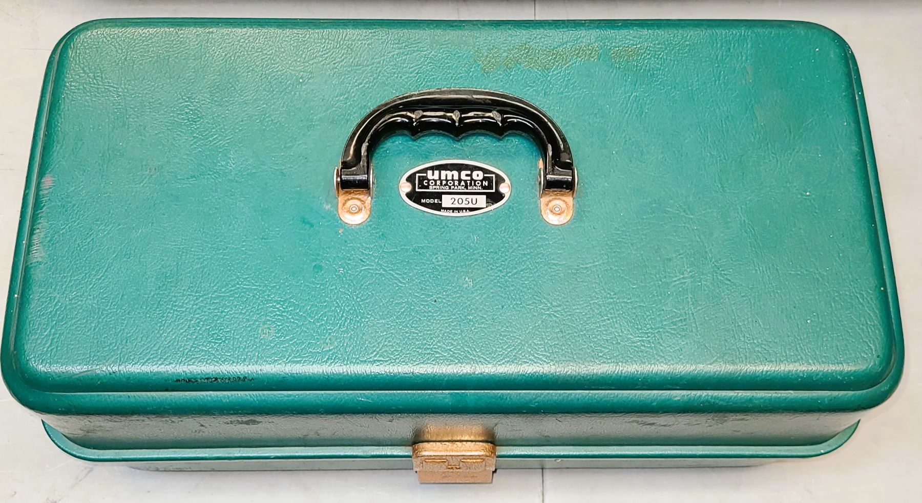 Tons of lures for all kinds of fish in a metal UMCO Tackle box Made in USA