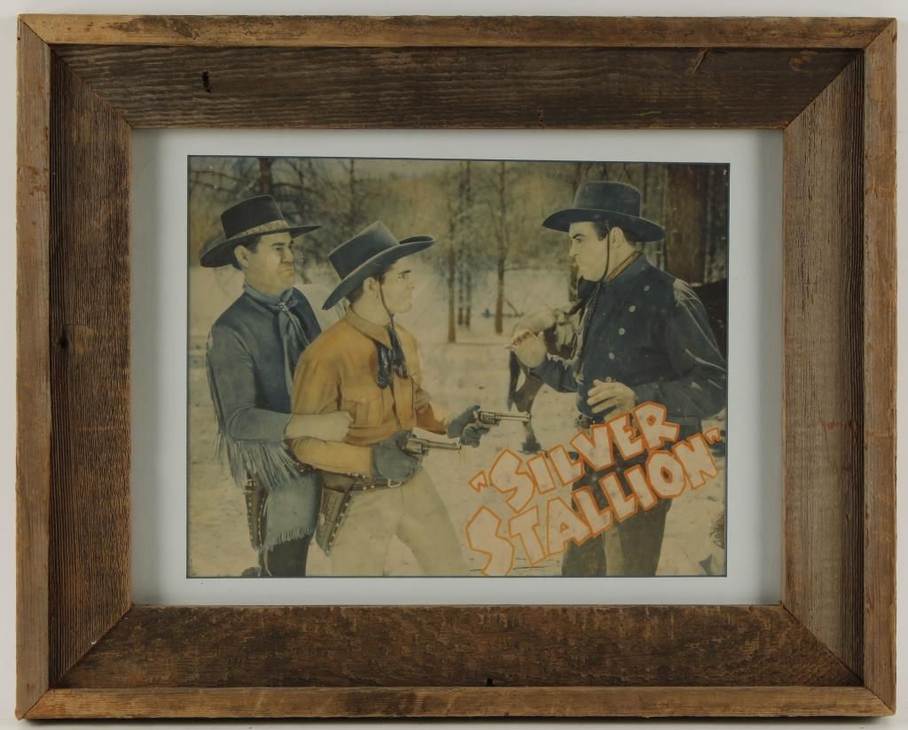 Silent Movie Era- hand colored, original, excellent condition. Framed and matted, barnwood frame. 20-1/2" wide x 16" high.