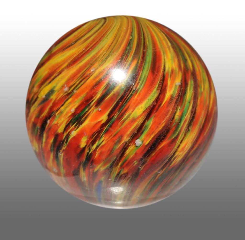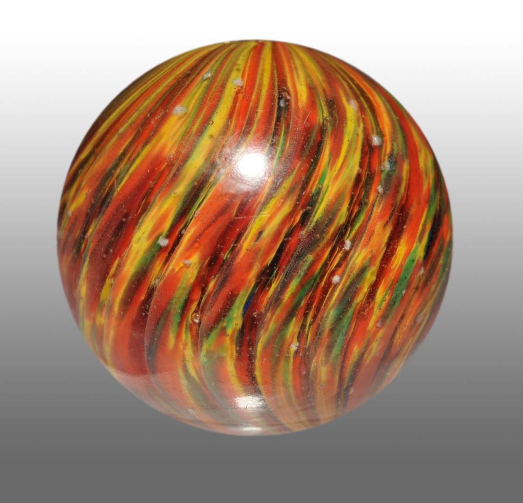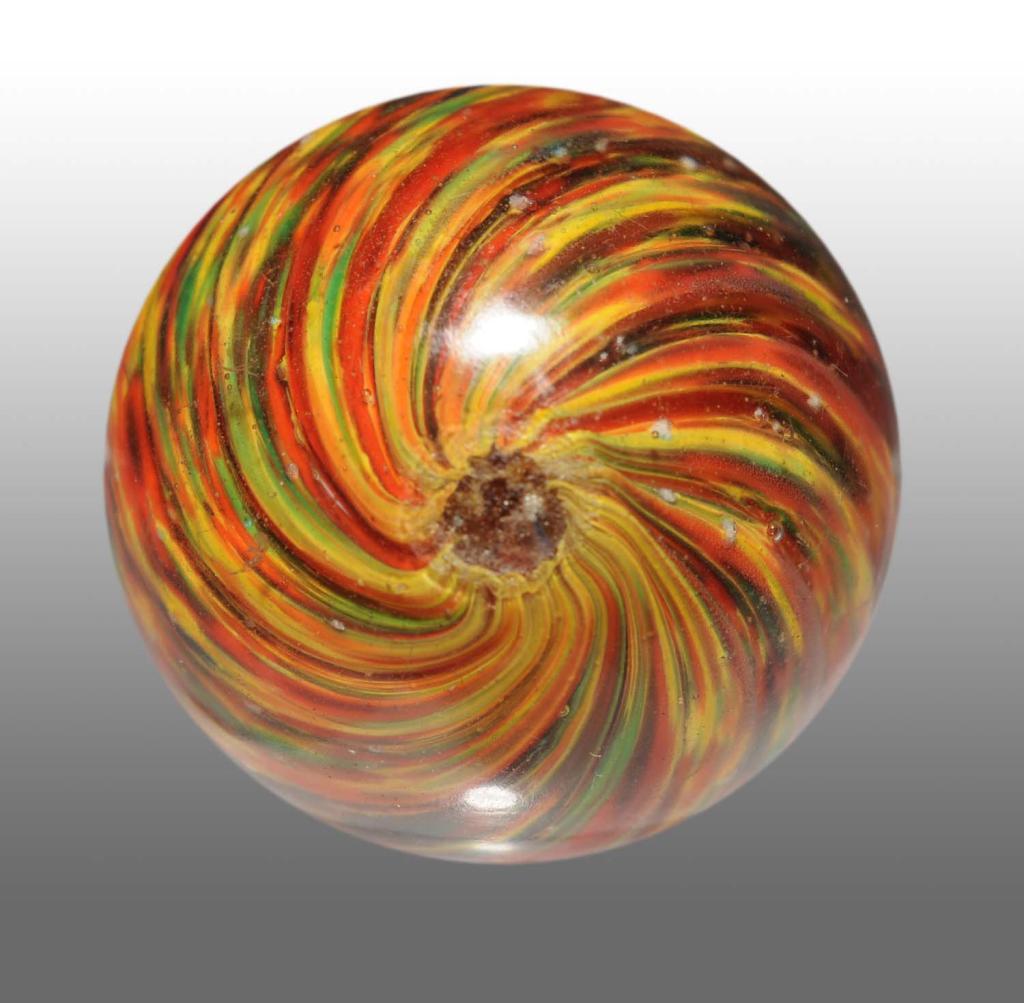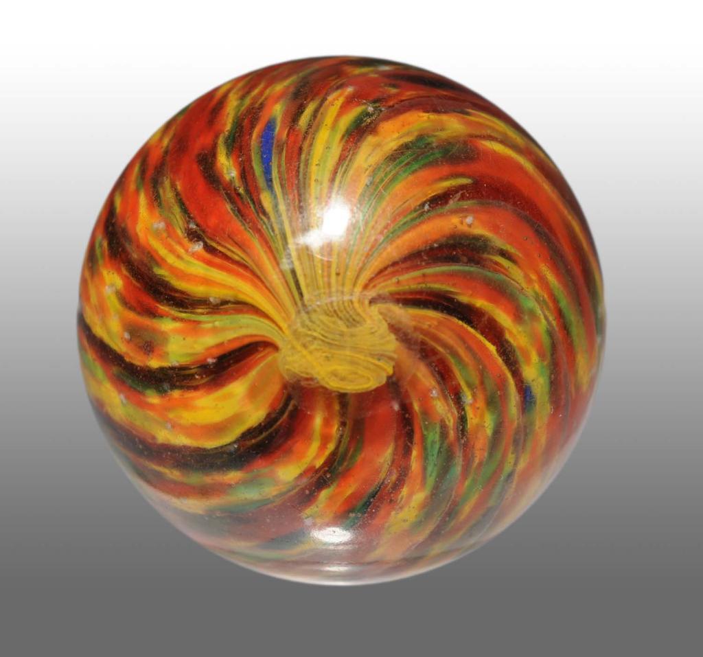 Original, untouched surface. Unique colors of red, orange, yellow and green with distinct lobes. Beautiful example. Condition (9.7). Size 1 - 3/8" Dia.
