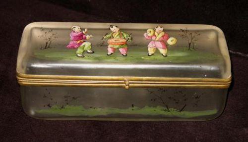 Lobemeyer (Moser) Handpainted Glass Box, 10 x 3.5 x 4.