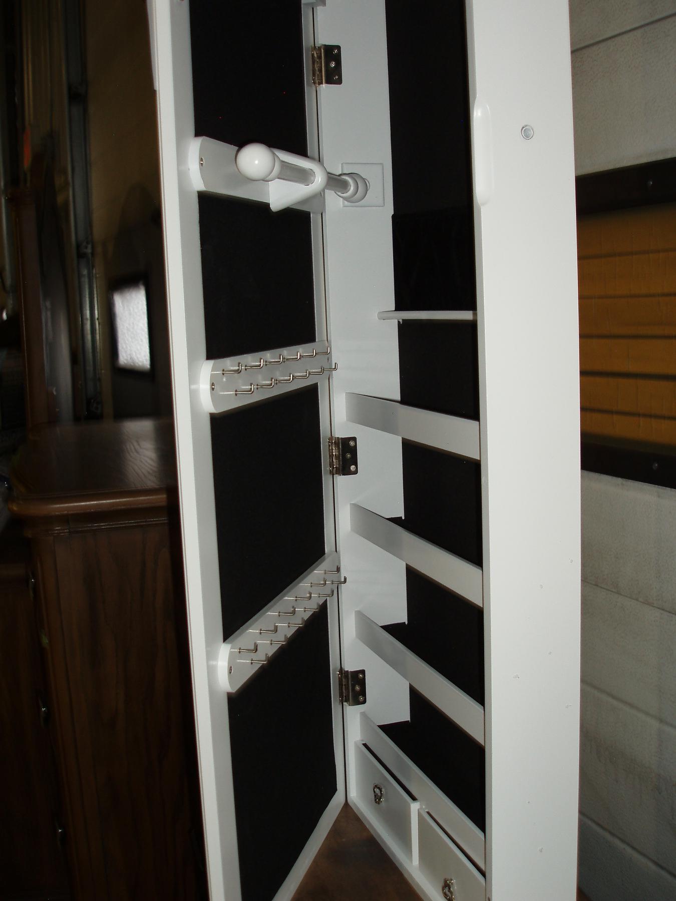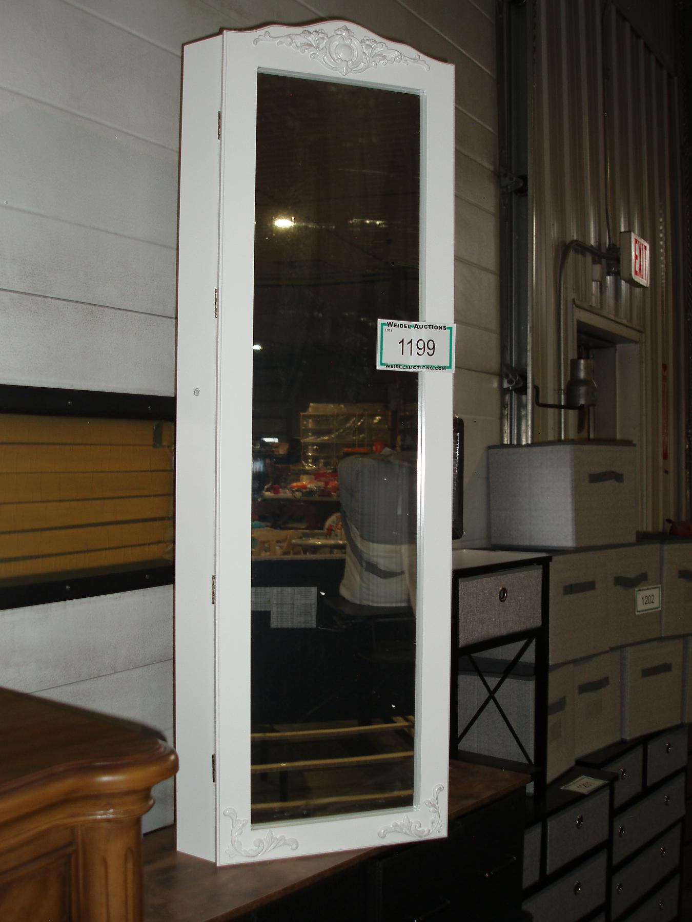 Locking, hanging Jewellry Cabinet with a mirror, white