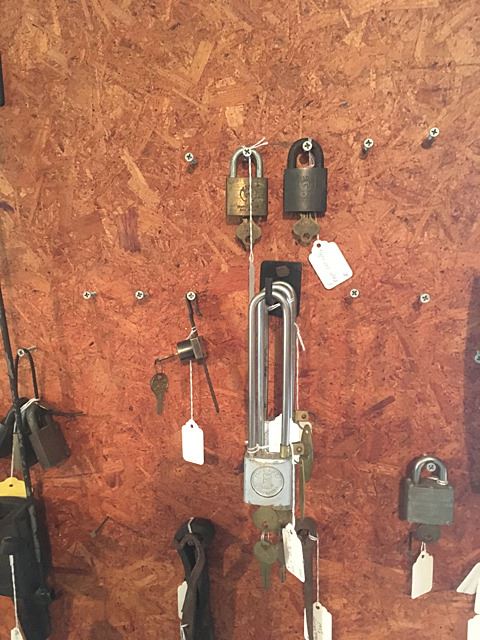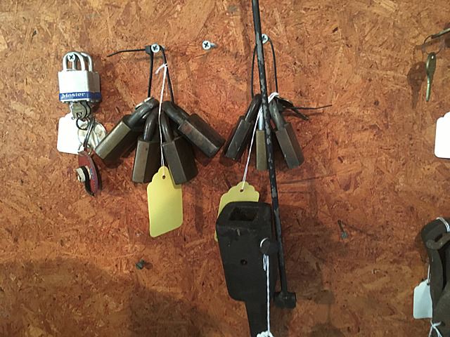 Master locks, 2 large farm pullies, vintage hardware, from the farm