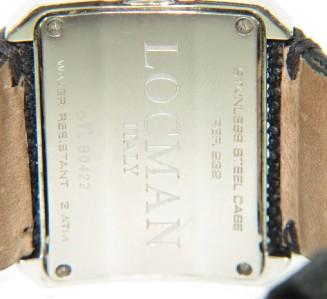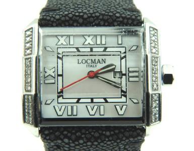 Locman Italy Stainless Steel Diamond, Leather Strap watch.The total watch's weight is 53.6 grams.The measurement of watch head is 25 x 36 mm and 8 mm thick.The total weight of diamond is 0.38 cts approximately. I color SI clarity.The length of watch: 9".Water Resistant