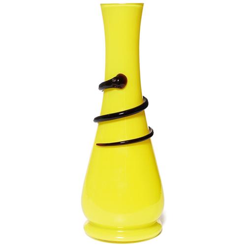 Loetz vase, Tango design in yellow with an applied serpent in cobalt, marked made in Czechoslovakia, 9"h, minor loss to tail of serpent