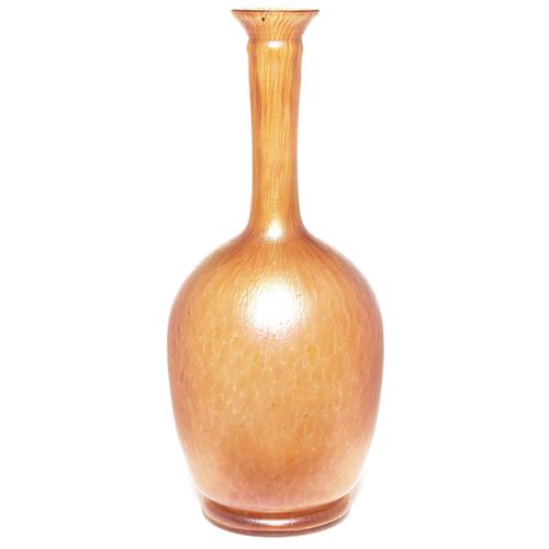 Loetz vase, bulbous form with long neck in mottled red glass, 12"h