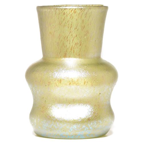 Loetz vase, bulbous pinched bottom and flaring neck with oilspot design, 4.5"h