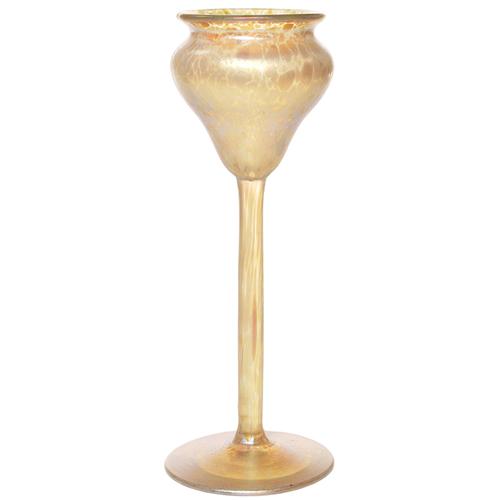 Loetz vase, flower form with a gold iridescent Papillon design, 9.25"h