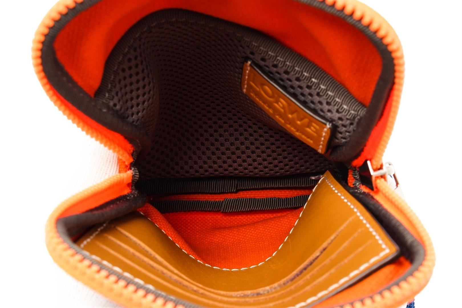 Loewe Orange Canvas with Jacquard Logo Crossbody Pouch. All available information is listed in the description and shown in the photos. loewe orange canvas with jacquard logo crossbody pouch with silver hardware, grey interior lining, heavy wear and darkening on exterior, scuffs in interior, scratches on hardware. Height: 7" Width: 4.5" Depth: 1", / 17.78 x 11.43 x 2.54 Cm