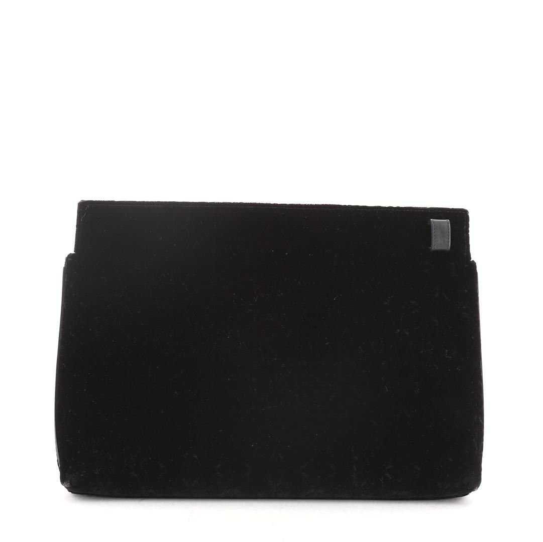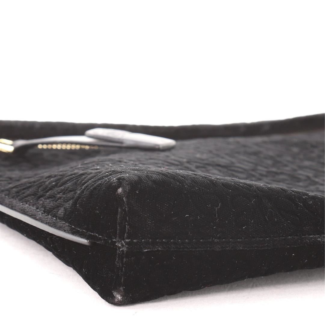 Loewe T Pouch Anagram Embossed Velvet Black Condition Details: Heavy wear on exterior corners, minor wear on exterior and in interior, scratches on hardware. Height 8", Width 11.5", Depth 2.5", Strap Drop None