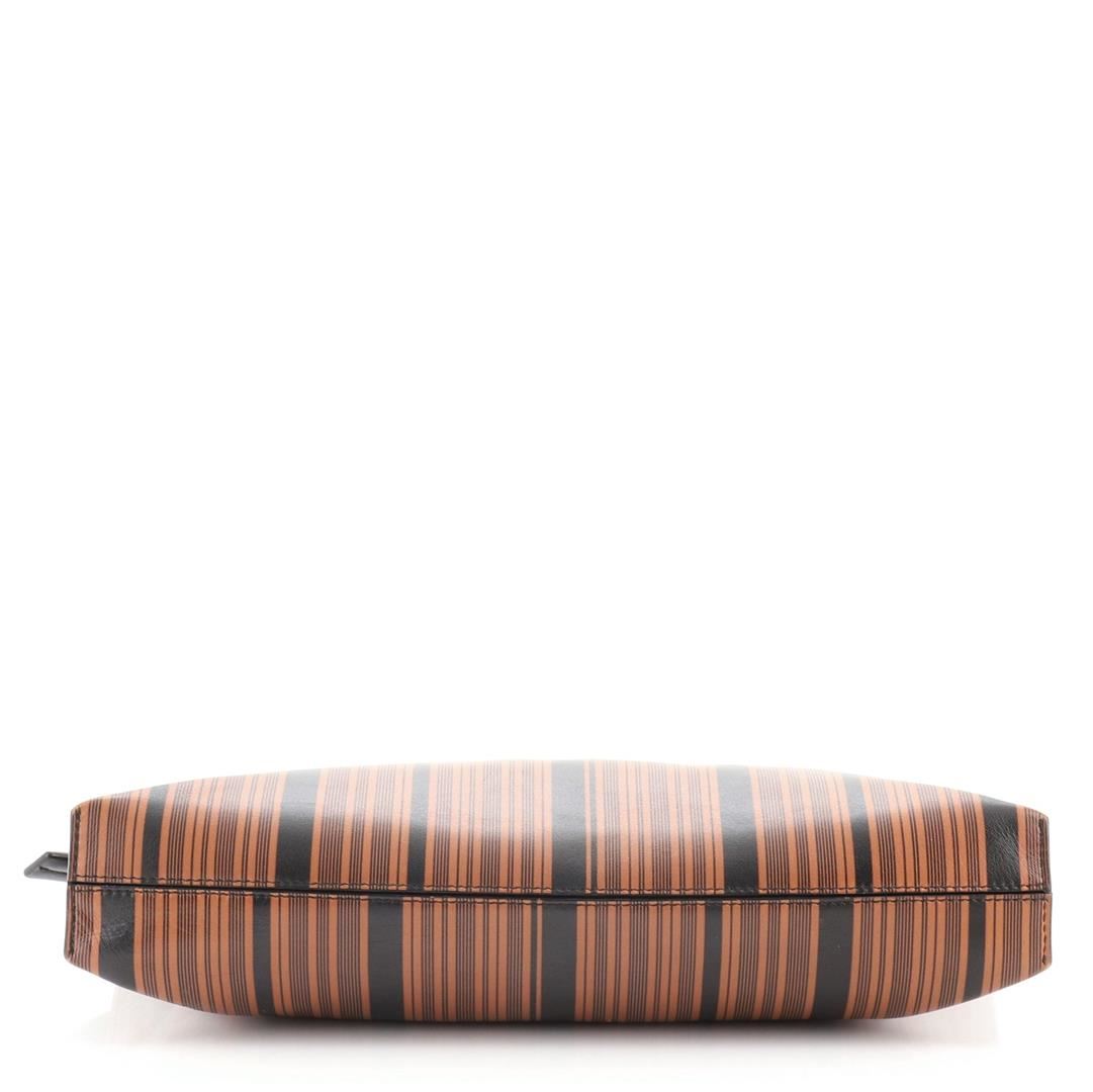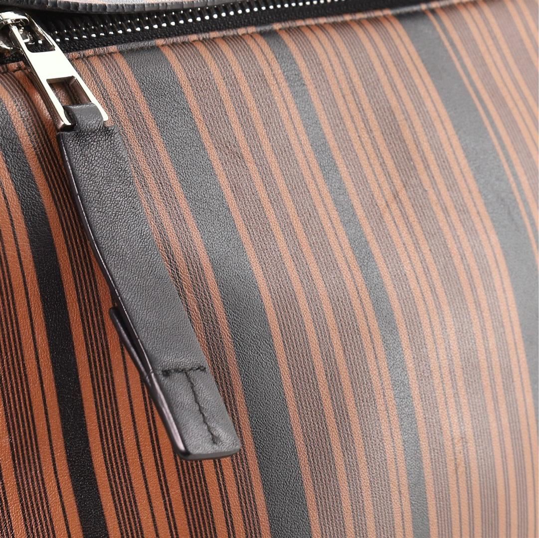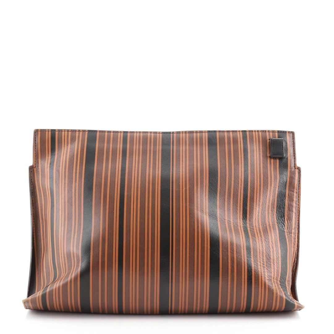 Loewe T Pouch Printed Leather Brown, Print Condition Details: Moderate wear on base corners and in interior, creasing, wear and scuffs on exterior. Cracking on opening trim and zipper pull wax edges, small glue stain on interior pocket opening corner,
