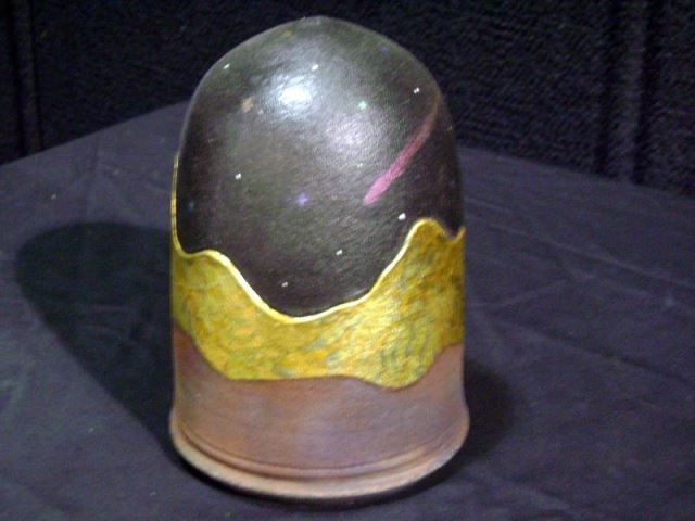 Loewenkamp Pottery, Clay Raku Fired Pot 7"x4" Retail: $240.00
