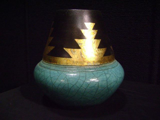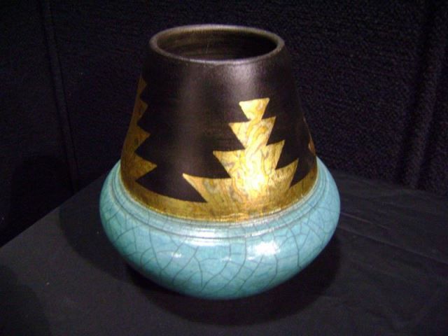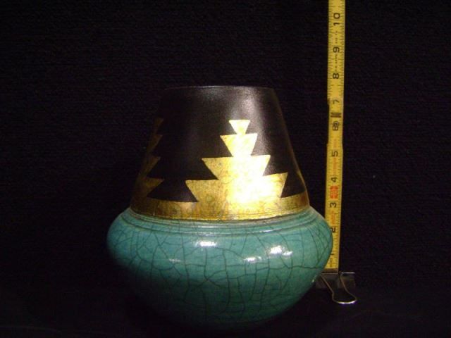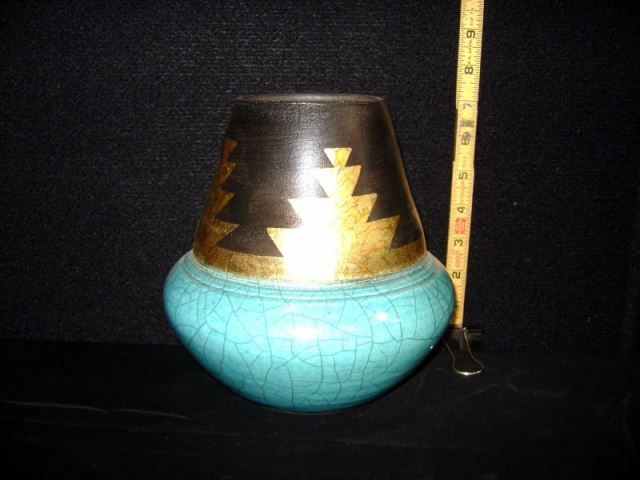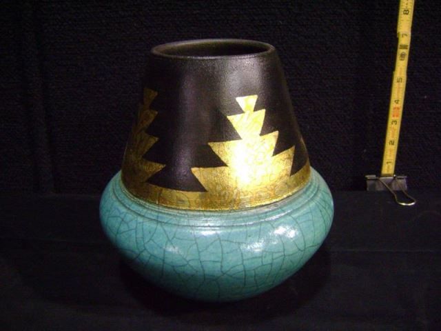 Loewenkamp Pottery, Raku Fired Fluted Vessel 7 1/2"x6 1/2'x3" Retail: $265.00