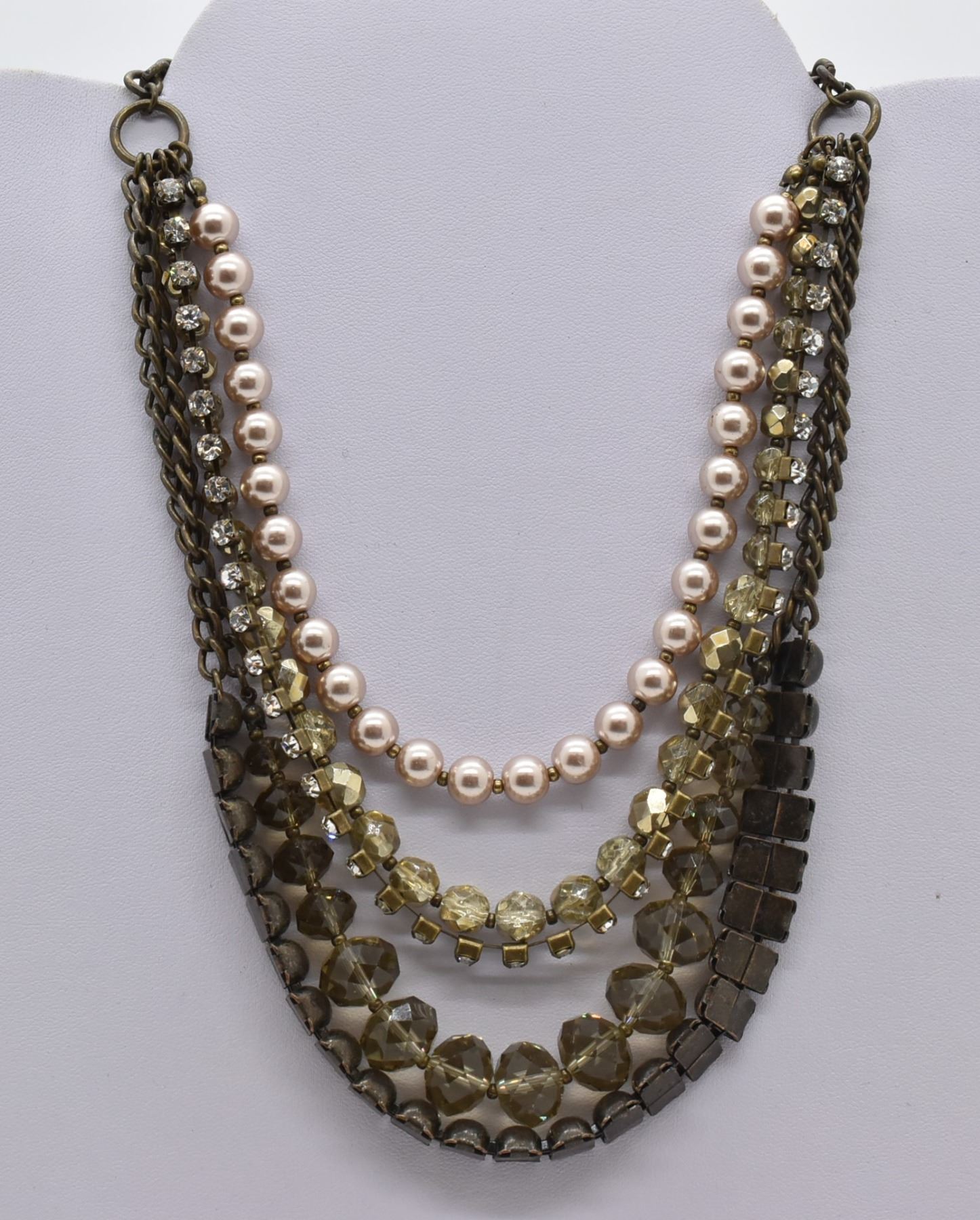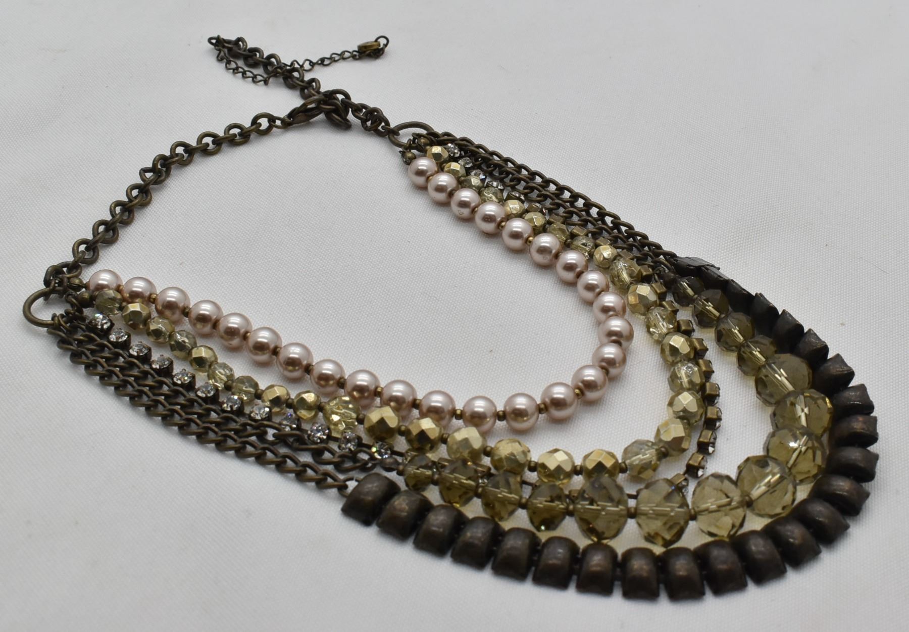 Loft 5 Strand Bead Necklace, longest strand measures 25''L and is adjustable and can be made shorter