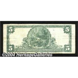 Logan, OH - $5 1902 Plain Back Fr. 598 First NB Ch. # 7649Three banks issued in this small Hocking County community, all of which are very scarce to just plain rare in large size. The Kelly census has recorded just four large examples from this institution, and only one bearing this title, the second used here. Nice Fine-Very Fine. <BR><BR><B>Important notice:</B> Heritage usually auctions material at the rate of 200-250 lots per hour. On some occasions eBay Live bid software or the Internet may not be able to keep up with the pace of the auction. We recommend placing a realistic absentee bid now as insurance to avoid disappointment. Occasionally the auctioneer may eliminate or reject an eBay Live bid, and the auctioneer may also reopen a lot after the close of the eBay live bidding (usually because we missed an audience bid), and may reject your bid even if it shows you as the winning bidder. By bidding via eBay Live, you agree that Heritage may award the lot to another bidder at its sole discretion under the circumstances described above or any other reasonable circumstances. Since eBay bids are not shown to us until we open the lot on the floor, we treat those bids just like floor bids. In most cases the floor responds before the eBay bid is presented to us, due to Internet lag time, so for consistency we have made it a policy that floor bids are always considered first over tie eBay live bids. Also please note that all Heritage lots purchased through eBay Live carry a 20% Buyer's Premium. Please make sure you read the Terms and Conditions before you bid. <BR><BR><B>IMPORTANT ANNOUNCEMENT ABOUT RESERVES:</B> Heritage now divulges all reserves on its web site 7 days before every auction. If you want to know whether the reserve on this lot has been met, and if not, what the reserve amount is, please visit this lot page on the HeritageCoin.com web site, or email: bid@HeritageGalleries.com