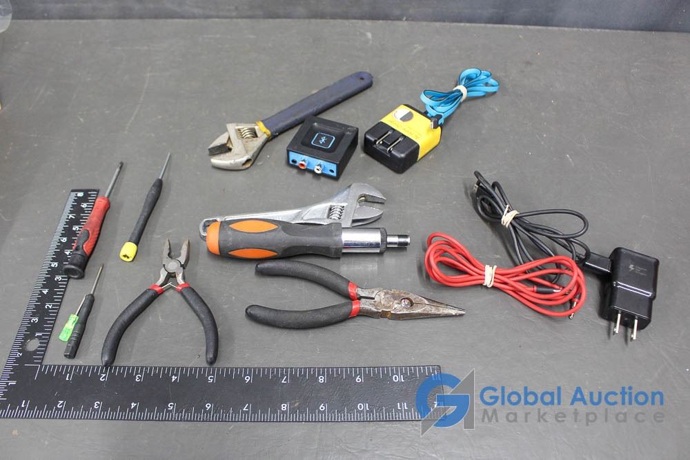 Logitech Bluetooth Audio Receiver, Beats Headphones Cord, Phone Cords, Adaptors and Assortment of Hand Tools