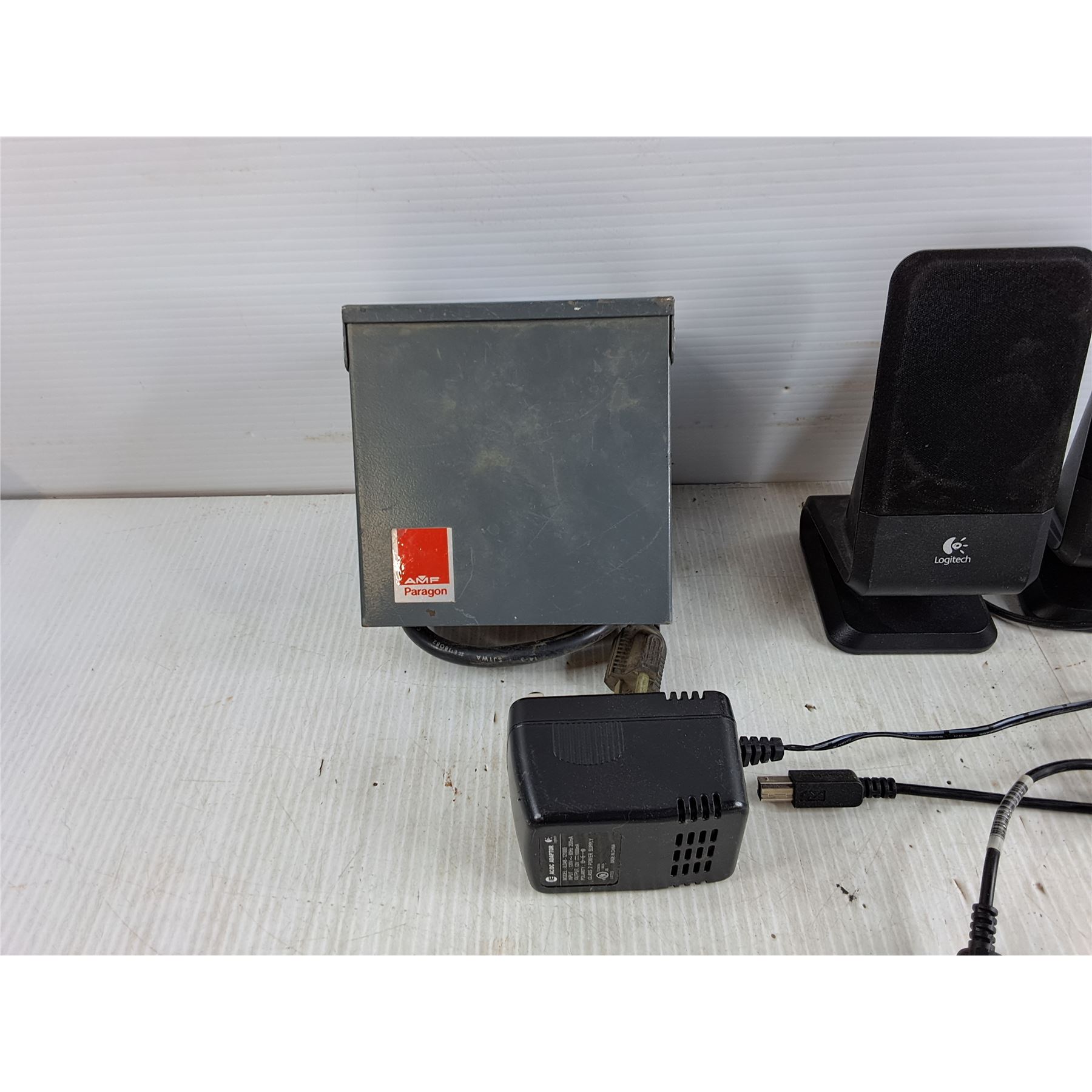 Logitech Speakers, Cords, AMF Paragon Power Supply - As Is