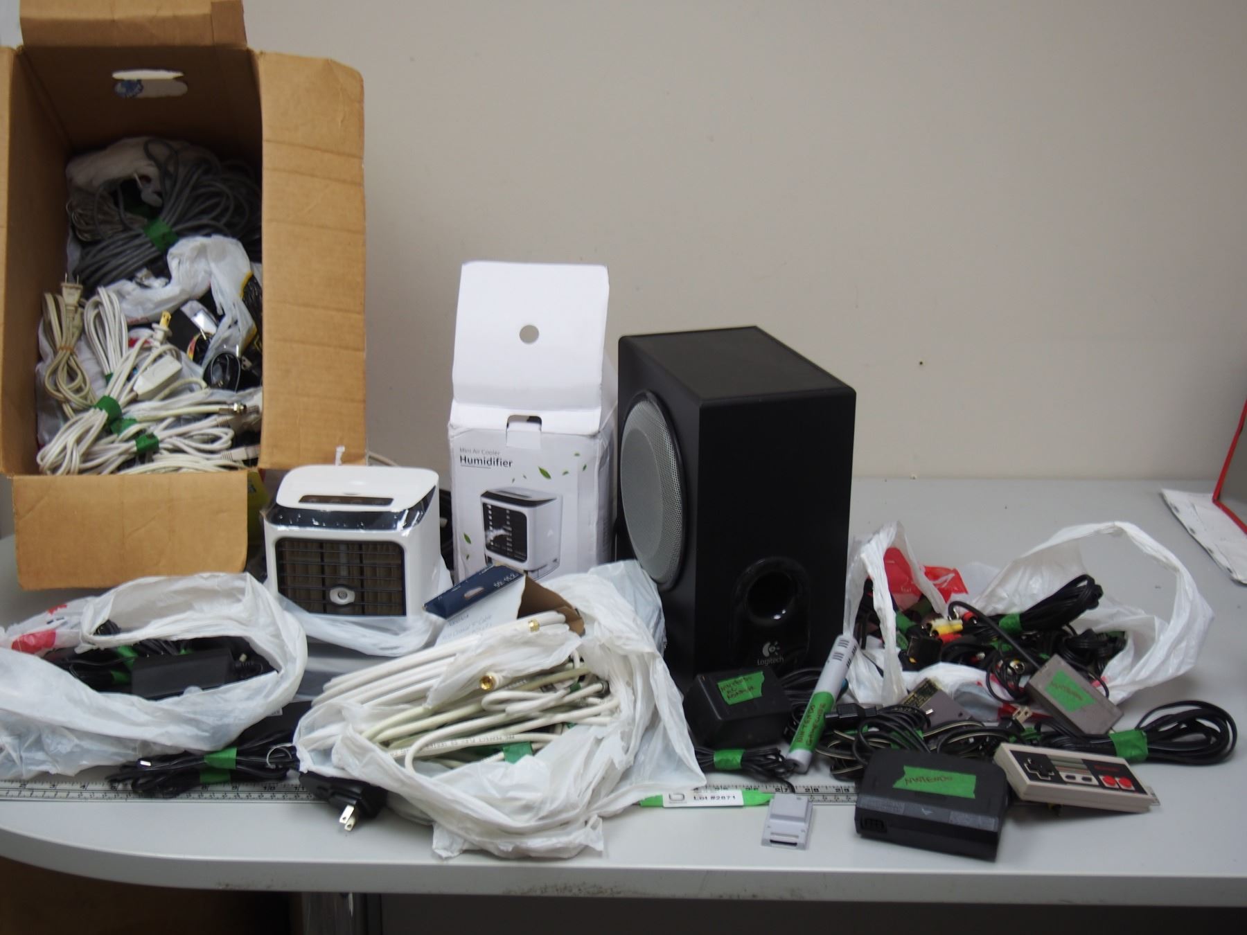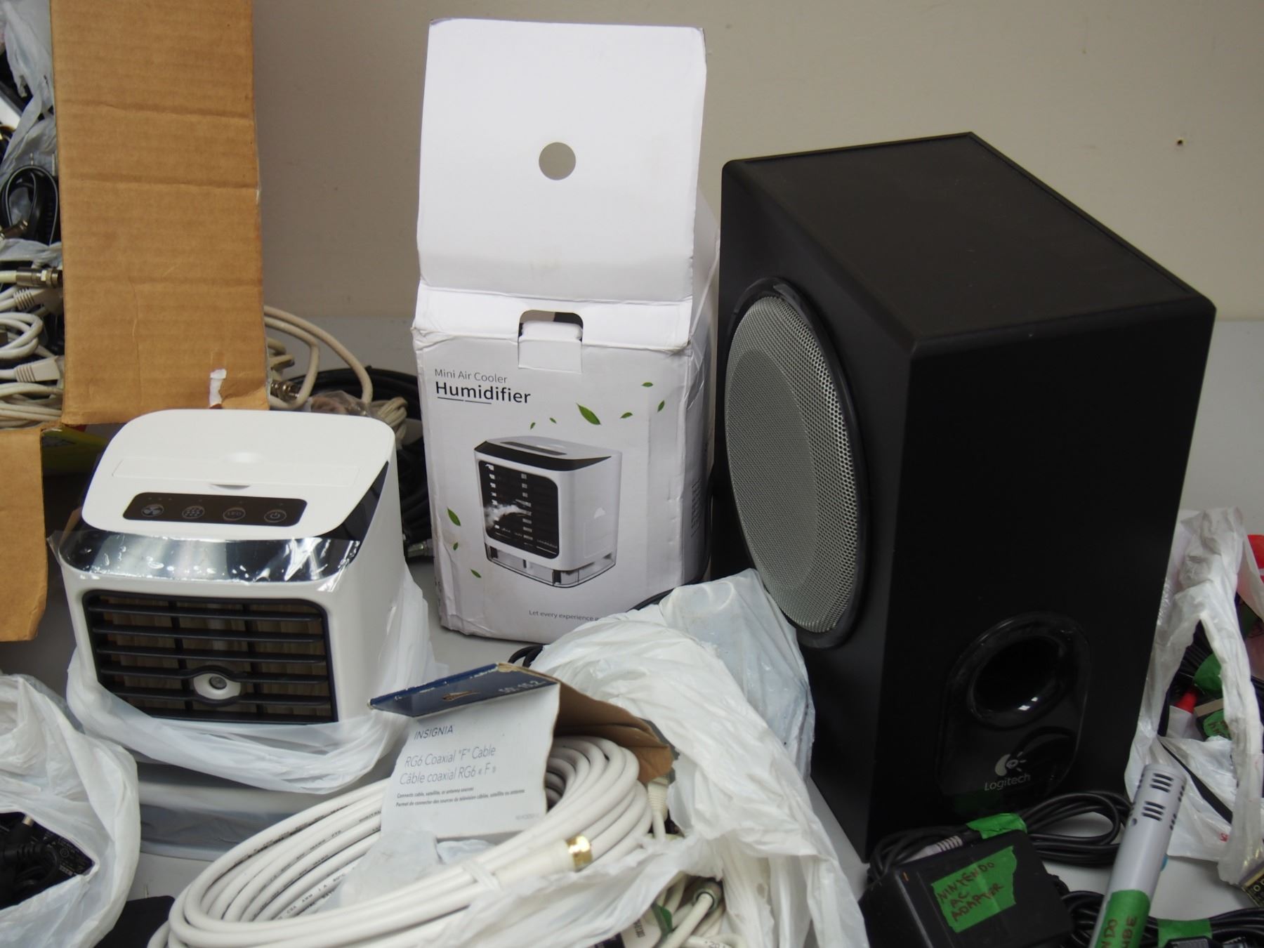 Logitech X-530 Sub, Humidifier, Coax Cable, Charger and Nintendo Adapter, Cords, Etc