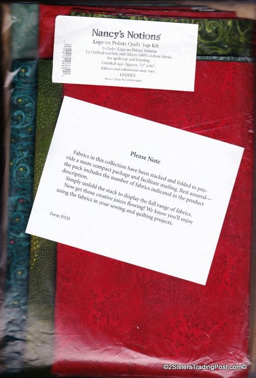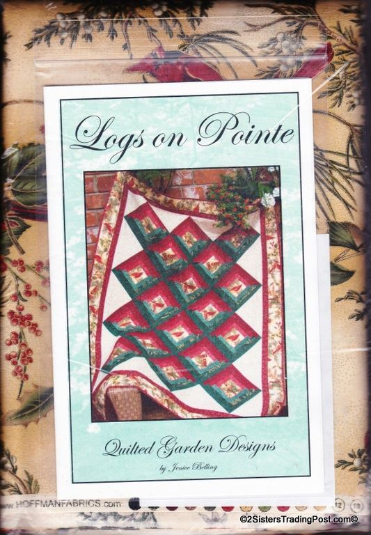 Logs on Pointe' Pattern by Jenice Belling for Quilted Garden Designs, kit #LPQTKT from Nancy's Notions. Kit includes 'Logs on Pointe' pattern, 15 fabrics for quilt top and binding. MSRP $79.00