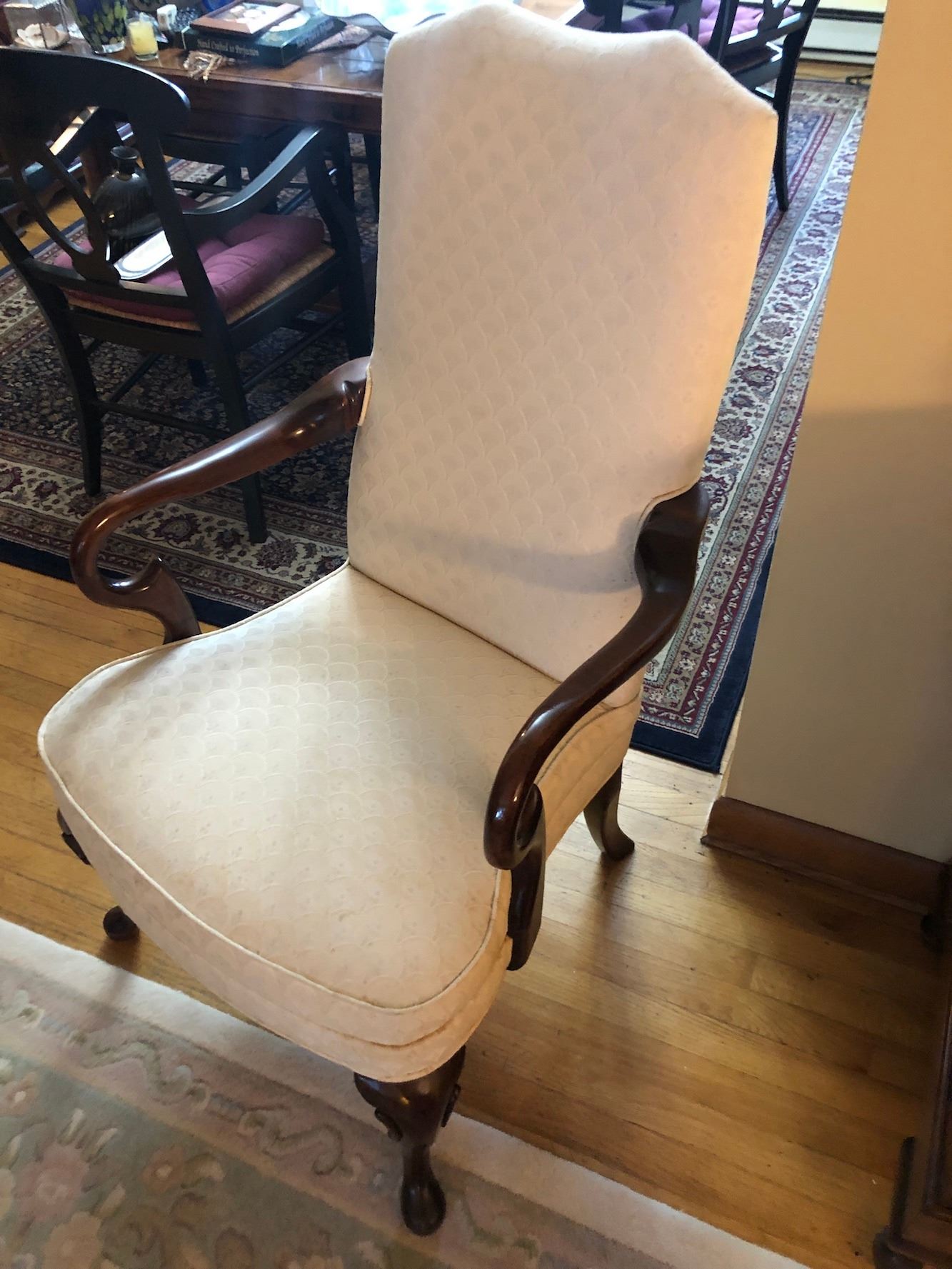 Lolling chair, clean upholstery, nice lolling arm chair.